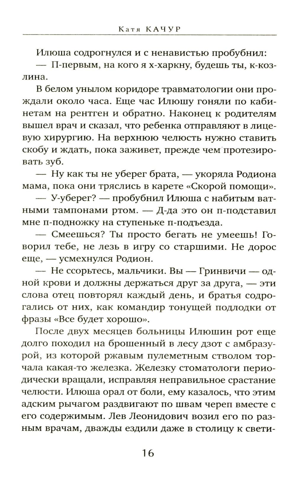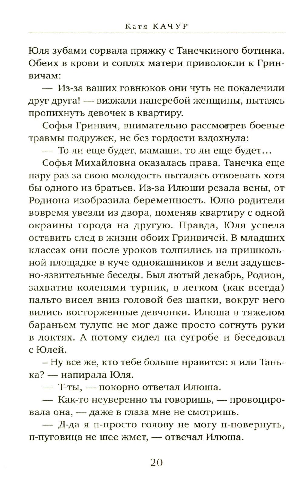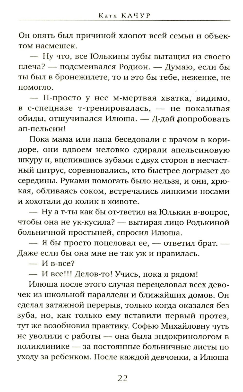 СОДЕРЖИТ ИНФОРМАЦИЮ О НАРКОТИЧЕСКИХ ИЛИ ПСИХОТРОПНЫХ ВЕЩЕСТВАХ, УПОТРЕБЛЕНИЕ КОТОРЫХ ОПАСНО ДЛЯ ЗДОРОВЬЯ. ИХ НЕЗАКОННЫЙ ОБОРОТ ВЛЕЧЕТ УГОЛОВНУЮ ОТВЕТСТВЕННОСТЬ. Девочки влюблялись в Родиона за то, что смелый, сильный, наглый. Но сердце им разбивал его младший брат Илюша, нежный, рассеянный, печальный. Все, чего Родион добивался поступками, Илья получал просто так, не ценил, бросал и уходил не оборачиваясь. Казалось, женщины остаются с Родиком, только чтобы не пропустить, когда вернется Илья. После своей смерти Родион обнаружил, что может присматривать за братом «с того света». Там же Родион встретил женщину, которая парадоксальным образом все это время влияла на судьбу обоих братьев и незримо вела их к роковому финалу.| Издательство | Эксмо |