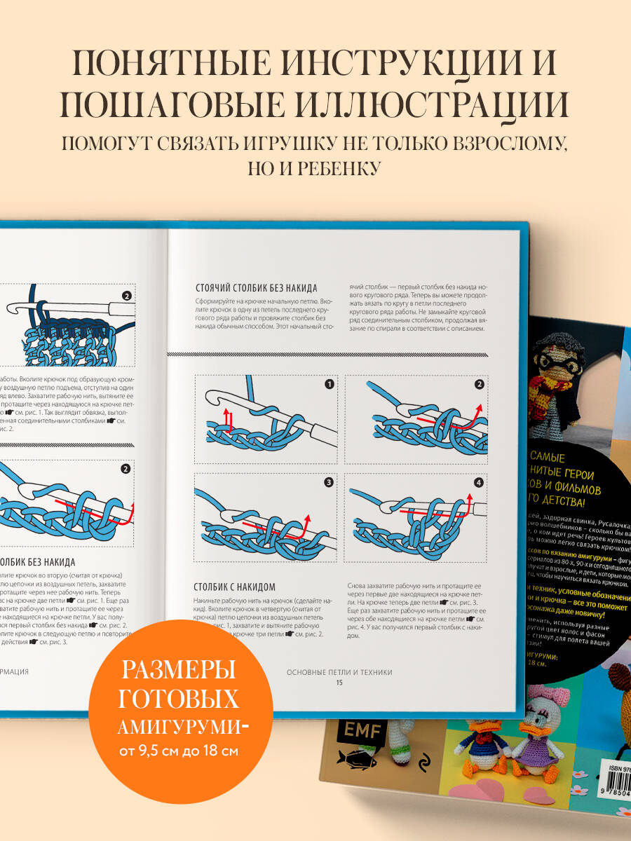 ВСЕ САМЫЕ ЛЮБИМЫЕ ПЕРСОНАЖИ ИЗ ДЕТСТВА В ОДНОЙ КНИГЕ: Микки и Минни Маус, красавица Белль, русалочка Ариэль, пчелка Майя, Гарри Поттер, Смурфы, Миньоны, Олаф, мастер Йода, Свинка Пеппа и многие другие! Вязание амигуруми становится массовым хобби: книги про то, как их связать, постоянно на верхних строчках рейтингов. Но амигуруми в виде обожаемого героя из мультфильма или киносаги - такого еще не было! Теперь каждый, и подросток, и взрослый, сможет связать героя из своего детства. Но выбрать кого-то одного будет непросто, ведь на страницах книги читателей ждут такие знаковые и всеми любимые персонажи. Описание основных петель и техник, условные обозначения, инструкции по выбору пряжи и крючка - все это поможет связать любимого персонажа даже новичку! Размеры готовых амигуруми - от 9,5 см до 18 см! В серии запланировано 3 книги, поэтому каждый найдет модель по душе и порадует необычным подарком близких и друзей.| Издательство | ООО "Издательство "Эксмо" |