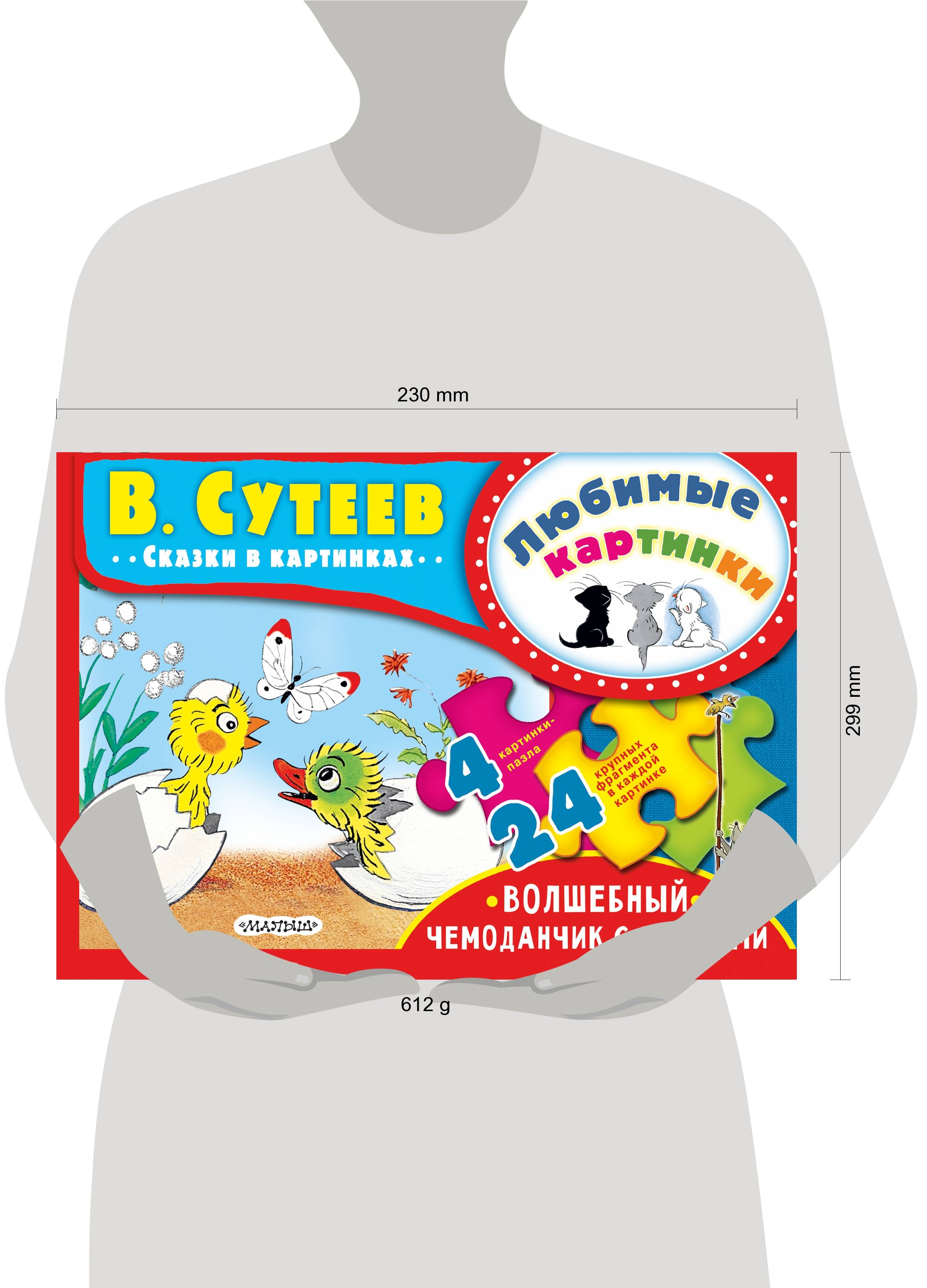 ВПЕРВЫЕ иллюстрации и тексты В. Сутеева - «советского Диснея» и «русского Андерсена», выходят в таком формате! Самый лучший подарок на Новый год, Рождество и другие праздники и памятные даты - окончание детского сада, начальной школы, день рождения и т.п.! Портфель-чемоданчик с красной пластиковой ручкой сделан из плотного картона с глянцевой ламинацией. На лицевой стороне чемоданчика - серебряная фольга. Закрывается на липучку.| Издательство | ИЗДАТЕЛЬСТВО "АСТ" |
