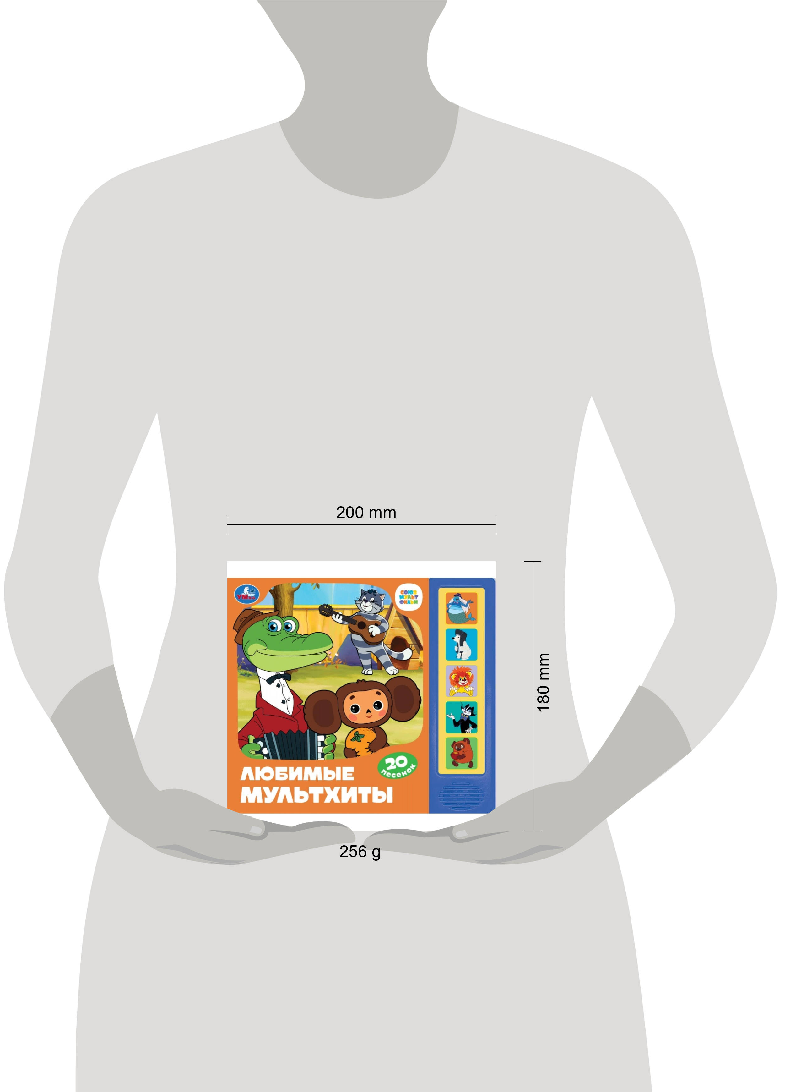 Музыкальная книга "Союзмультфильм. Любимые мультхиты" ТМ "УМка" станет отличным подарком для вашего малыша: - 5 звуковых кнопок - 20 песен из любимых м/ф (фрагменты): "Антошка", "Рыжий, рыжий, конопатый", "Песня Забавы", "Песня Водяного", "Песня Умки", "Колыбельная Медведицы", "Кабы не было зимы", "Песня Деда Мороза", "Песенка о лете", "Чунга-Чанга", "Песенка Львёнка", "Песенка Черепахи", "Песня охранников короля", "Дует Трубадура и Принцессы", "Песенка друзей", "Баю-баюшки-баю", "Песенка первая" (Винни-Пух), "Песенка-загадка" (Винни-Пух), "Песенка Чебурашки", "Песенка крокодила Гены" - тексты песен - красочные иллюстрации - любимые персонажи - отдельная кнопка Вкл./Выкл. на обороте книги Ребёнок с удовольствием будет листать плотные страницы, рассматривать яркие картинки с изображением любимых мультгероев и, конечно, нажимать на кнопки и слушать весёлые песенки. Малыш легко освоит включение звука: по нажатию на кнопку песенка включится, при втором нажатии выключится, при третьем - заиграет следующая композиция. На каждой кнопке по 4 музыкальных фрагмента. Благодаря компактному размеру книгу удобно взять с собой в дорогу. Игра с музыкальной книгой ТМ "УМка" расширяет кругозор и развивает: - слуховое восприятие и музыкальный слух - навык чтения - фантазию - образное мышление - память - тактильное восприятие Объём: 10 стр. Формат: 200 х 175 мм. Материал: пластмасса + картон. Работает от 3-х батареек типа LR44 (в комплекте). Рекомендовано детям младшего дошкольного возраста.| Издательство | С-Маркет ООО |