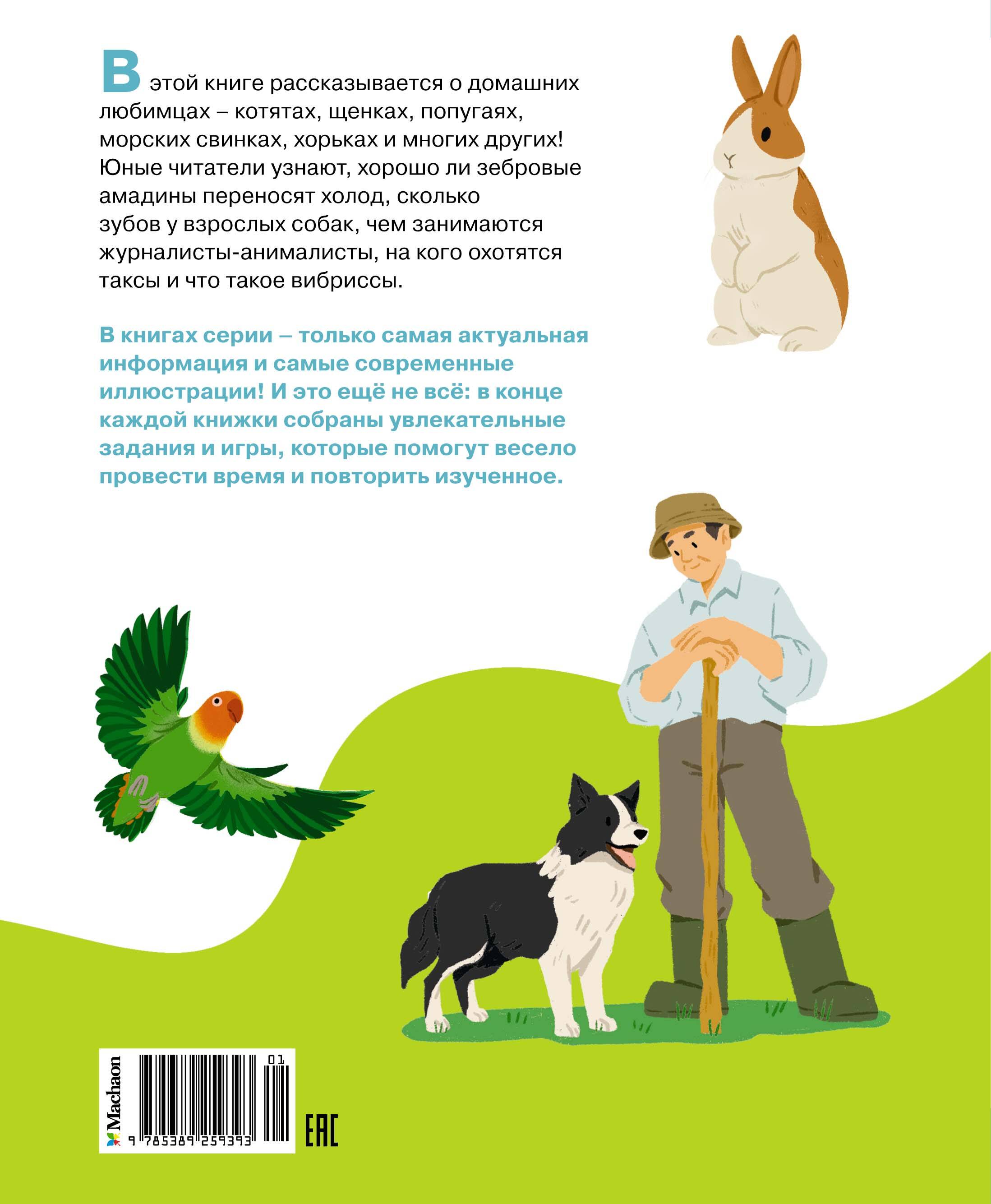 В этой книге рассказывается о домашних любимцах - котятах, щенках, попугаях, морских свинках, хорьках и многих других! Юные читатели узнают, хорошо ли зебровые амадины переносят холод, сколько зубов у взрослых собак, чем занимаются журналисты-анималисты, на кого охотятся таксы и что такое вибриссы. В книгах серии - только самая актуальная информация и самые современные иллюстрации! И это ещё не всё: в конце каждой книжки собраны увлекательные задания и игры, которые помогут весело провести время и повторить изученное.