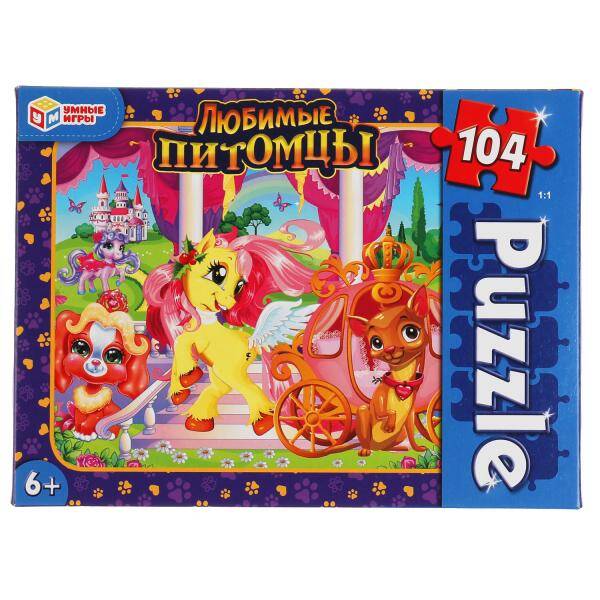 Любимые питомцы. Пазлы классические в коробке. Пазл 104 детали. Умные игры в кор.24шт