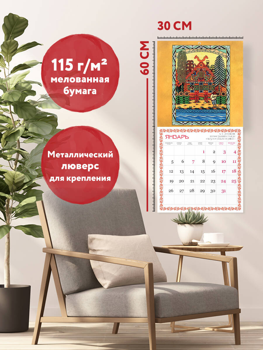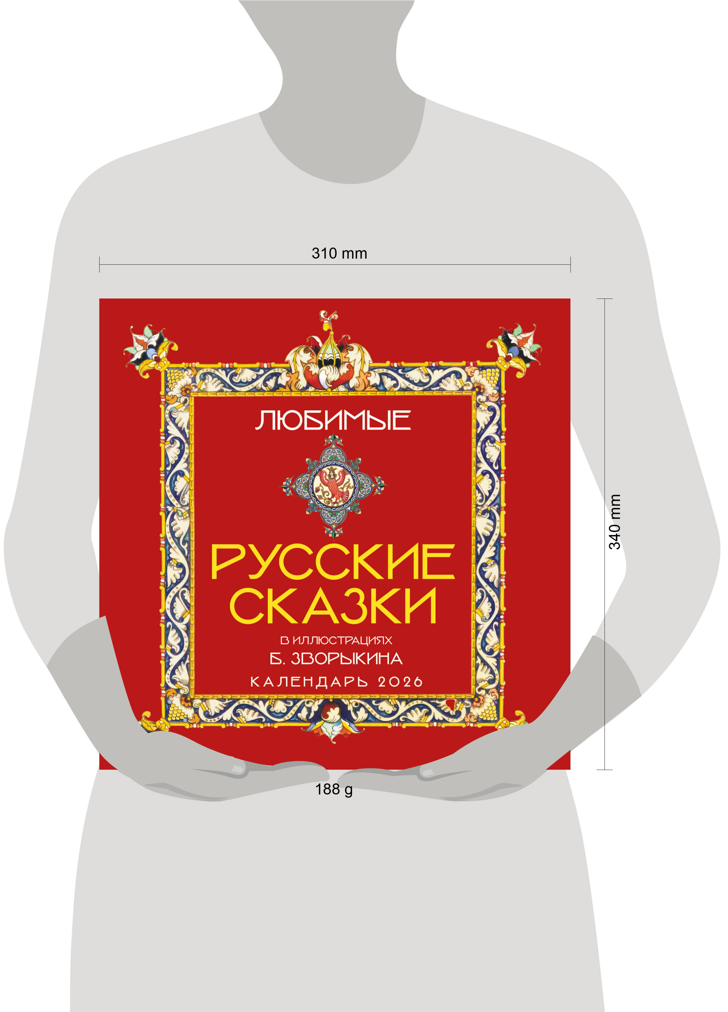 О серии: Наши настенные календари отличаются высоким качеством исполнения! Тщательно подобранные иллюстрации, напечатанные на глянцевой бумаге высочайшего качества, станут настоящим украшением дома, а в календарной сетке найдется место для ваших планов: большие клетки позволят делать записи и организовать свой год! В календаре также отмечены все государственные праздники. В серии настенных календарей издательства «ЭКСМО» каждый найдет тему по вкусу: великие художники, великолепные подборки с самыми знаменитыми произведениями искусства, легендарные кинематографические саги и игры, главные книжные авторы и бестселлеры, фотографии и иллюстрации любимых животных и многое-многое другое! О календаре: Уникальный настенный календарь! Авторские иллюстрации Бориса Зворыкина, легендарного иллюстратора советских детских сказок, по мотивам русских народных сказок добавят волшебства в ваш дом! Создайте прекрасную атмосферу для детей и сами окунитесь в детство! Отличное полиграфическое исполнение, удобная сетка, большой формат - здесь есть все необходимое для идеального календаря. Прекрасный подарок для каждого! Для кого: Высокое качество полиграфического исполнения прекрасно дополняет репродукции шедевров живописи, что непременно будет по достоинству оценено людьми с хорошим вкусом. Технические параметры: - Тип календаря - настенный перекидной. - Год - 2026. - Календарная сетка - с разбивкой по месяцам. - Вид скрепления - скрепка. - Ширина - 30 см. - Высота - 30 см. - Внутренний блок - мелованная бумага 115 г/м2. - Подложка - плотный гофрокартон для поддержания формы. - Индивидуальная упаковка в плотный целлофановый пакет.| Издательство | ООО "Издательство "Эксмо" |