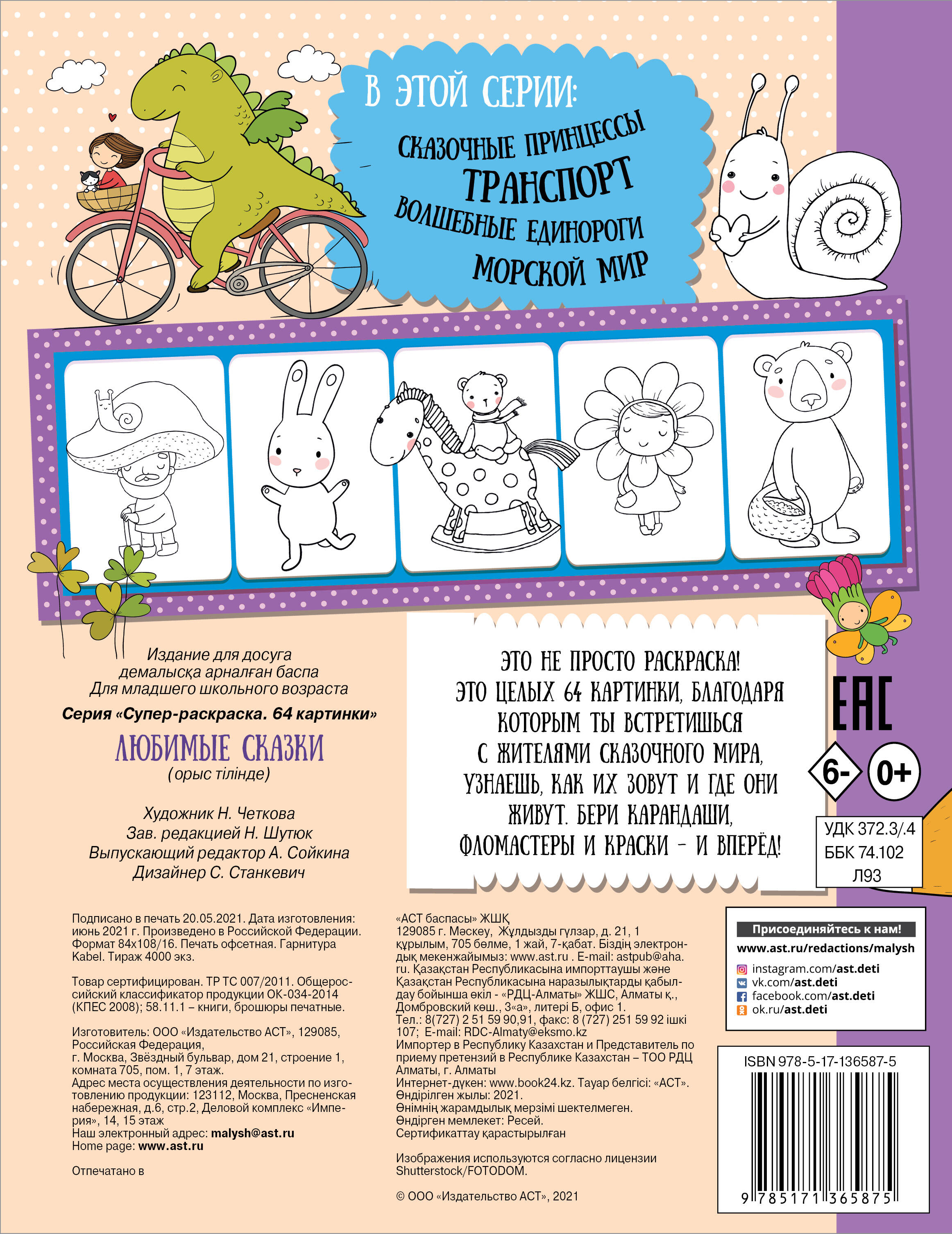 Это целых 64 картинки, благодаря которым ты встретишься с жителями сказочного мира, узнаешь, как их зовут и где они живут. Бери карандаши, фломастеры и краски - и вперёд!