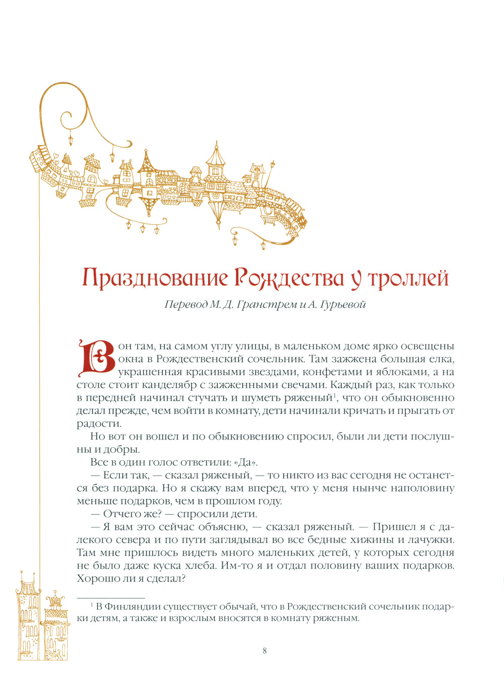 В этой книге мы представляем вам сказочные истории страны Суоми, на которых росли Туве Янссон, Сакариас Топелиус и другие финские писатели.В них мы переносимся в чудесную волшебную Вселенную, в которой присутствуют добрые и злые духи, гномы и эльфы, тролли и русалки, домовые и водяные, где волшебство является реальностью, а хитрые звери зачастуюодерживают победу над простодушными людьми.