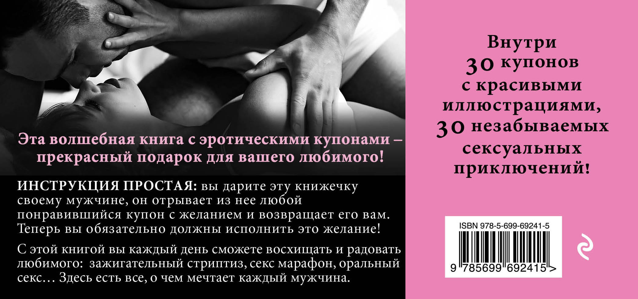 ПРОДАНО 50 000 ЭКЗЕМПЛЯРОВ В РОССИИ! Эта волшебная книга с эротическими купонами - прекрасный подарок для вашего любимого! Инструкция простая: вы дарите эту книжечку своему мужчине, он отрывает из нее любой понравившийся купон с желанием и возвращает его вам. Теперь вы обязательно должны исполнить это желание! С этой книгой вы каждый день сможете восхищать и радовать любимого: зажигательный стриптиз, секс-марафон, оральный секс… здесь есть все, о чем мечтает каждый мужчина. Внутри 30 купонов с красивыми иллюстрациями, 30 незабываемых сексуальных приключений!| Издательство | ООО "Издательство "Эксмо" |