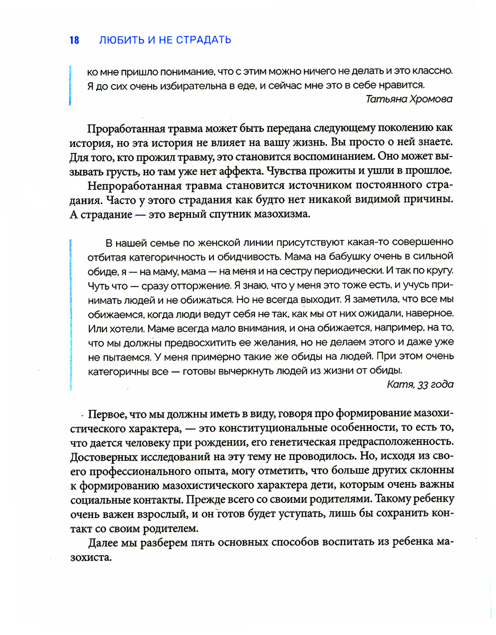 Мазохистический тип характера - один из самых распространенных в нашей стране. У кого-то он проявляется в виде отдельных черт, а у кого-то похож на железобетонную конструкцию: настолько он жесткий и закостеневший. У нас в стране часто принято гордиться своими страданиями и тем, как много мы можем пережить или вынести. Этот тип характера больше всего изучен психоаналитиками. Задача автора - понять природу формирования этого характера, увидеть то, как устроен внутренний мир мазохиста, а также помочь понять, как же чувствуют себя близкие человека, который раз за разом выбирает страдание. Свобода от насилия эмоционального (и не только) начинается с небольшого шага - разрешить себе сказать: «Дело не во мне». Поэтому так называется наша серия книг об осознанном выходе из токсичных отношений, об освобождении от больных привязанностей к абьюзерам, об иммунитете к психологическим манипуляциям. Для ценителей психотерапевтического нон-фикшен и тех, кому тесно в отношениях.
