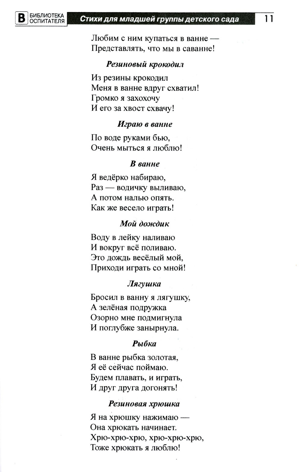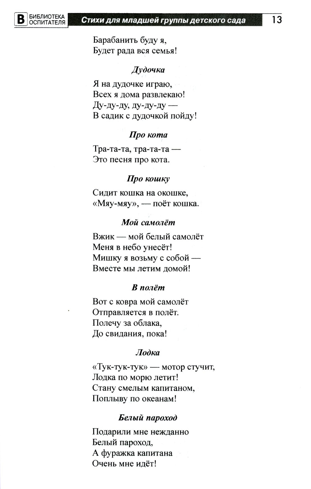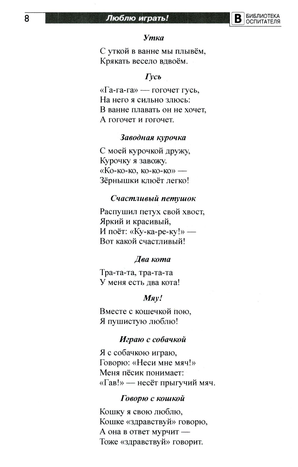 В книге собраны авторские стихи для детей младшей, средней, старшей и подготовительной к школе групп детского сада, а также для готовящихся к школе. Они написаны с учетом возрастных особенностей дошкольников, могут использоваться в их повседневной деятельности и звучать при каждом удобном случае: на занятиях, прогулке, во время наблюдений, экскурсий, игр, при рассматривании картин и иллюстраций, во время выполнения режимных моментов.| Издательство | Творческий центр Сфера |