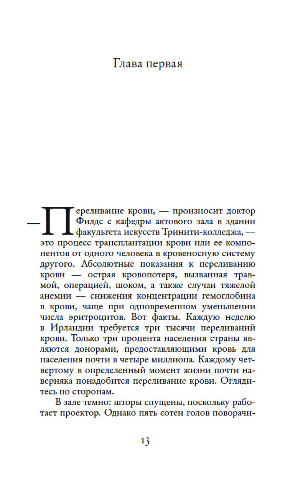 Джойс Конвей переживает разлад с мужем, но беда не ходит одна - с ней происходит несчастный случай и она попадает в больницу. После выписки Джойс необъяснимым образом начинает вспоминать лица, которые она никогда не видела, и места, в которых никогда не бывала... Внезапное, всепоглощающее чувство дежавю заставляет молодую женщину почувствовать, будто ее жизнь не принадлежит ей. В чем же причина? Неужели в том, что в больнице ей перелили чужую кровь? И какое отношение к этому имеет Джастин Хичкок из Чикаго, человек с непростой личной судьбой, преподающий в знаменитом дублинском Тринити-колледже? Удивительная цепочка событий и знаков приведет героев в самое сердце тайны… и навсегда изменит две жизни.| Издательство | Иностранка |