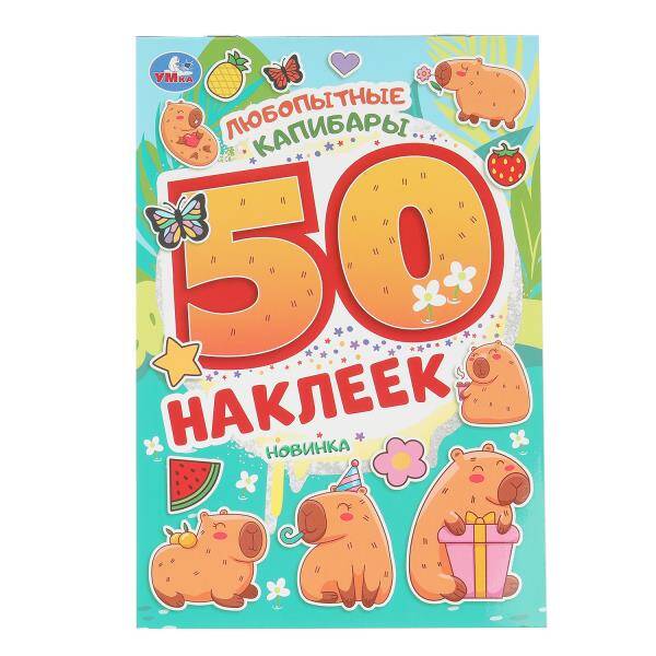 Любопытные капибары. 50 наклеек. 145х210 мм. Скрепка. 2 стр. Умка в кор.50шт
