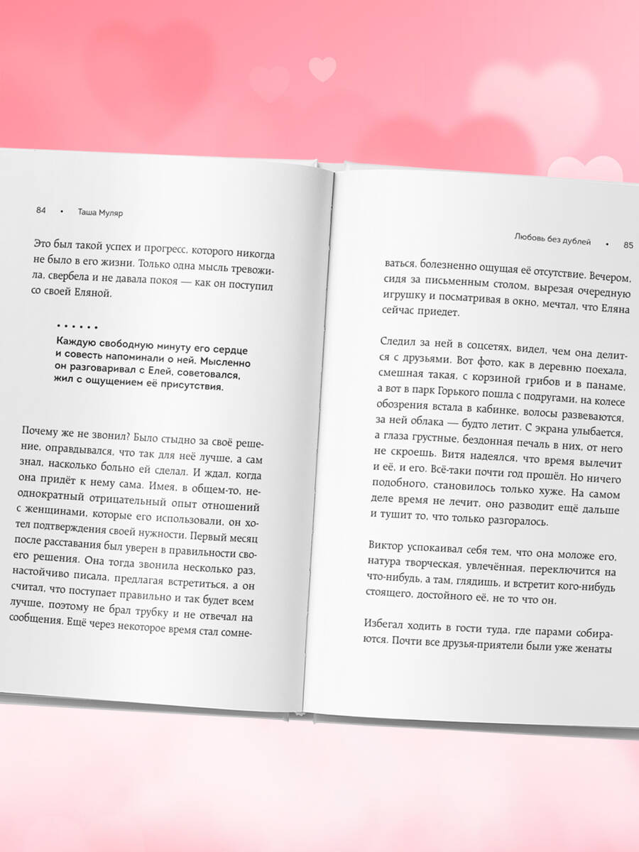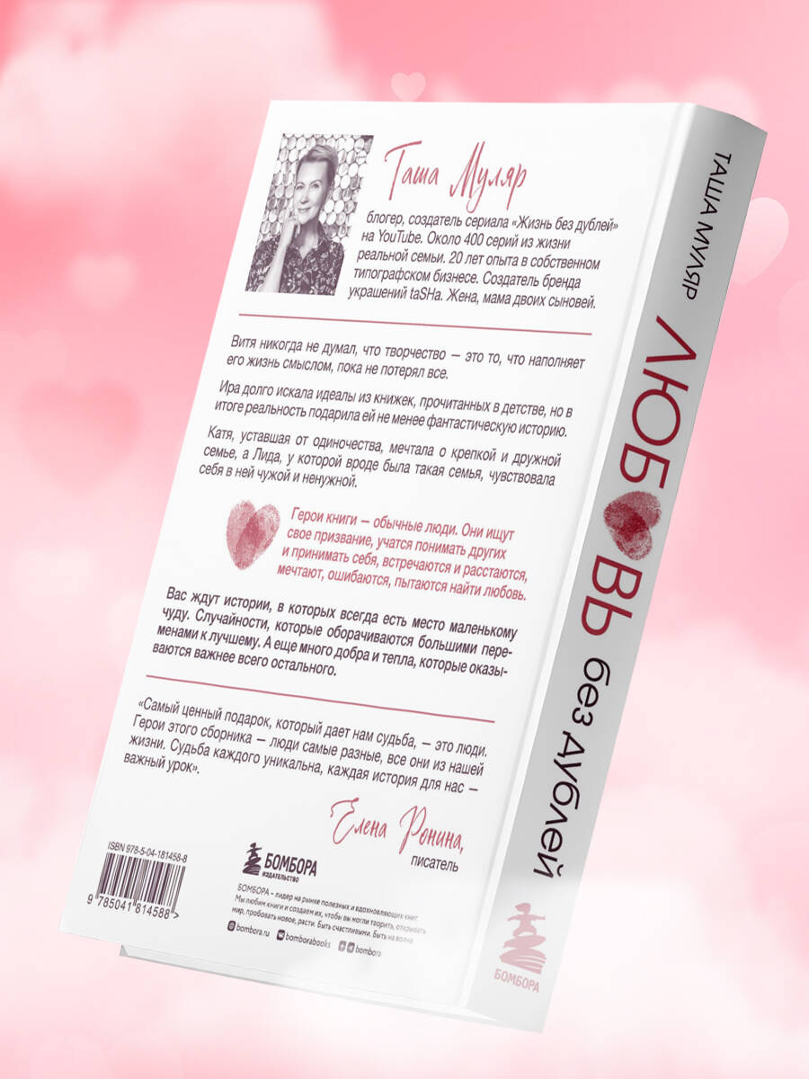 Таша Муляр - блогер, создатель сериала «Жизнь без дублей» на YouTube. Около 400 серий из жизни реальной семьи. 20 лет опыта в собственном типографском бизнесе. Создатель бренда украшений taSHa. Жена, мама двух сыновей. «Мои рассказы про обычных людей, про истории, которые могут произойти с каждым на пути к счастью и поиску самого себя. Герои - собирательные образы, обычно женщины, каждая проживает свою непростую судьбу и через трудности находит то, что ищет и к чему стремится. Финал всегда хороший и обнадеживающий, предлагающий читателю задуматься и увидеть ответ. Мой девиз "Дальше будет лучше" стал девизом и моих героев». «Герои этого сборника люди самые разные, все они из нашей жизни. Судьба каждого уникальна, каждая история для нас - важный урок». - Елена Ронина, писатель| Издательство | ООО "Издательство "Эксмо" |