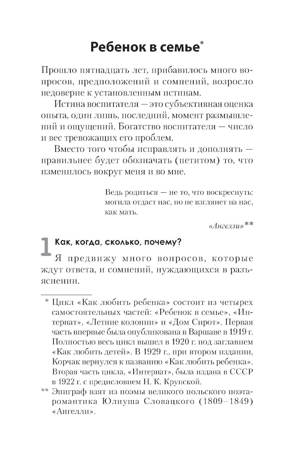 Книги Януша Корчака давно стали классикой воспитания. О них не хочется много говорить, их хочется читать, читать и перечитывать тонкие и остроумные замечания, детали, внимательно подсмотренные умным взглядом великого мастера. Эти книги несут ту меру доброты и любви к детям, которая, медленно впитываясь, меняет каждого. В книгу включен полный текст книги «Как любить ребенка».