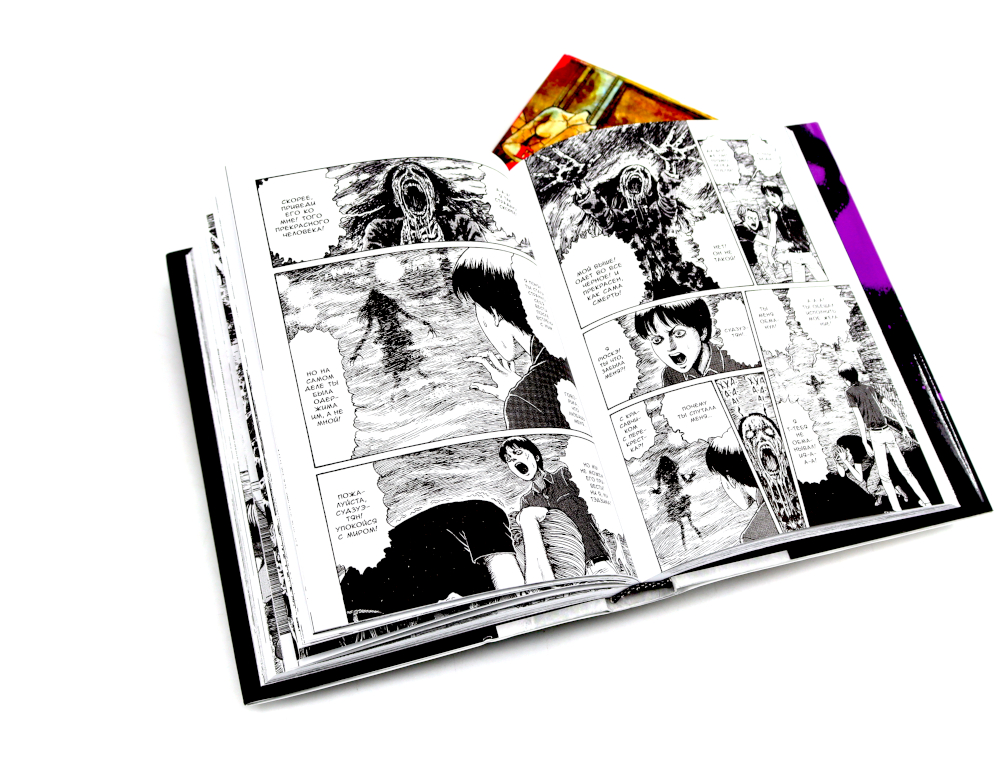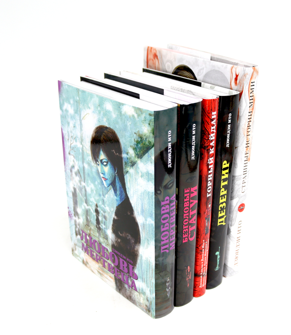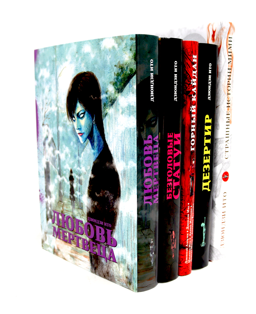 Комплект состоит из 5 томов манги Дзюндзи Ито. О манге «Любовь мертвеца»: по городу бродит загадочный красавчик, который внезапно появляется перед гадающими на перекрестках девушками и рушит их самые сокровенные мечты жестокими предсказаниями. Все, кому не посчастливилось его повстречать, по непонятной причине кончают с собой самым жестоким образом. Окутанный густым туманом вечерний город пропитан запахом неминуемой смерти. Приобщитесь же к необычному безумию этой истории, сдобренному каплями свежей крови! В манге «Безголовые статуи» в мастерской чудаковатого скульптора обнаруживаются безупречно изваянные статуи, способные внушить восхищение любому ценителю искусства, если бы не одна жуткая деталь - все они лишены голов! Зачем старому мастеру понадобилось создавать столь пугающие творения? И почему из школы, в которой он работал, стали пропадать ученики? Кроме заглавного рассказа, в сборник включены еще 12 леденящих кровь историй. О манге «Горный кайдан»: горы - это портал, ведущий в другой мир, неведомый и непостижимый. Горы - это средоточие тайн, ареал обитания демонов. Горы - это... Впрочем, скоро вы сами узнаете, что это такое. Встречайте графическое переложение произведений Дзюмпэя Адзуми, мастера холодящих кровь историй о горах, в исполнении титанов манги! О манге «Дезертир»: издеваясь над другими, человек взращивает в сердце ростки порочного удовольствия. В сборнике «Дезертир» представлены двенадцать историй о том, как неспособность обуздать отрицательные эмоции приводит к невообразимо пугающим последствиям. В манге «Страшные истории Мими» Мими известна тем, что постоянно рассказывает друзьям о приключившихся с ней ужасных происшествиях. В ее историях фигурируют призраки, злоумышляющие духи и прочие сверхъестественные существа. Ее сердечный друг, сопровождающий девушку повсюду, не раз подвергается серьезной опасности, но при этом склонен считать все преследующие их несчастья результатом неудачного стечения обстоятельств. Но, может быть, призраки и чудовища все же не являются плодом неуемной фантазии Мими, и за девушкой и в самом деле охотятся пришельцы из потустороннего мира?| Издательство | Фабрика комиксов |
