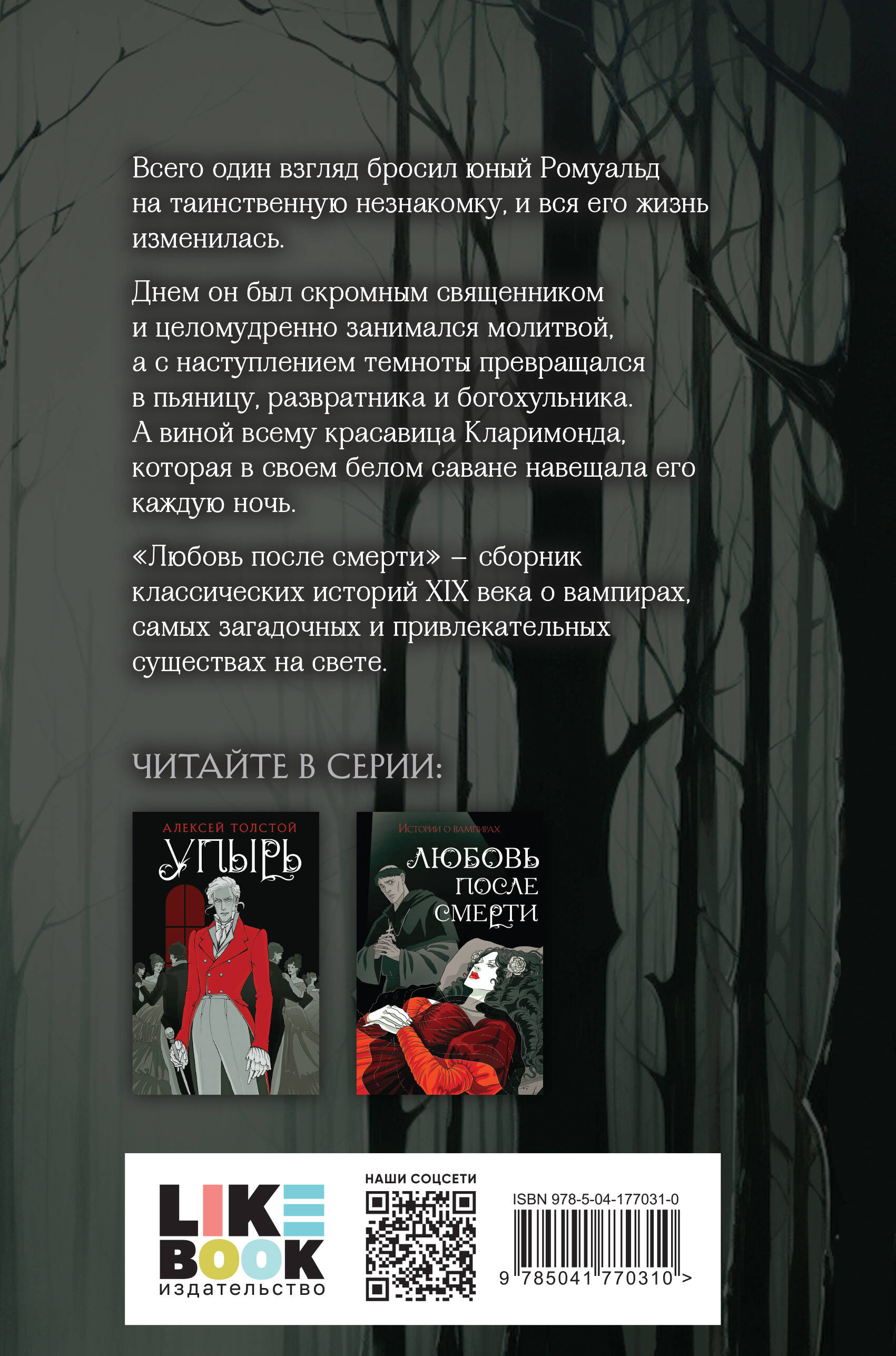 «Любовь после смерти» - сборник готических историй XIX века о вампирах. Увлекательный сюжет, яркие характеры, приятный ужас и капелька отменного юмора. В книгу вошли рассказы Теофиля Готье, Джона Полидори, Фрэнсиса Кроуфорда, Хьюма Нисбета и Брэма Стокера. Всего один взгляд бросил юный Ромуальд на таинственную незнакомку, и вся его жизнь изменилась. Днем он был скромным священником и целомудренно занимался молитвой, а с наступлением темноты превращался в пьяницу, развратника и богохульника. А виной всему красавица Кларимонда, которая в своем белом саване навещала его каждую ночь. Издание понравится всем любителям вампиров, а также романов «Дракула», «Кармилла», «Академия вампиров», «Интервью с вампиром», «Сумерки», «Красавица» и «Жажда».| Издательство | ООО "Издательство "Эксмо" |