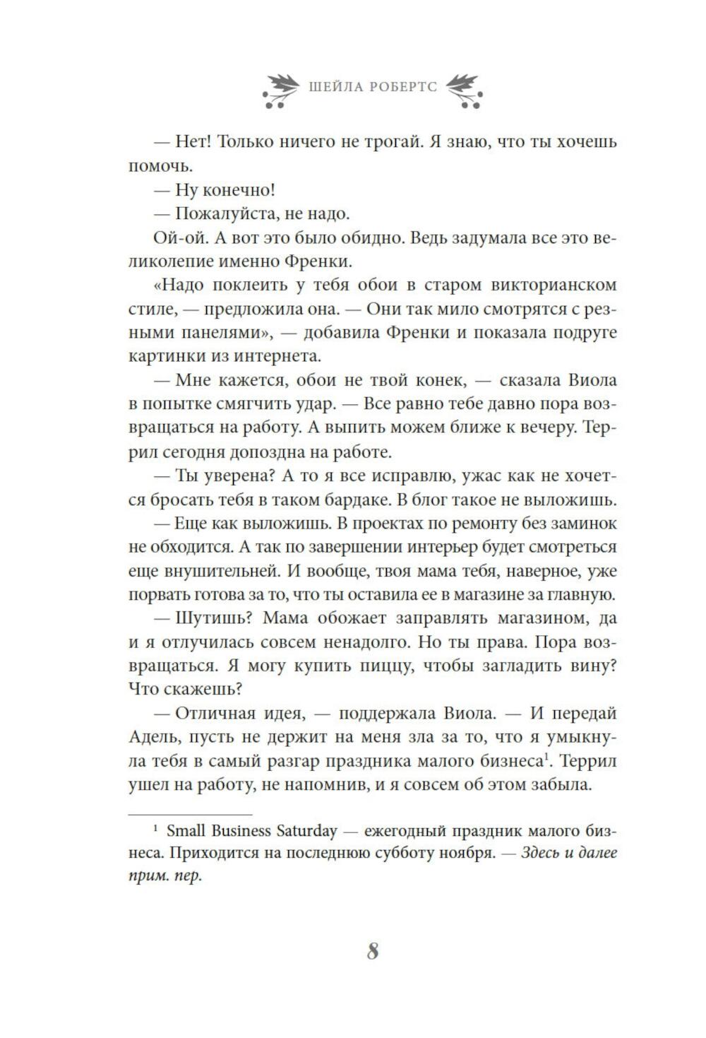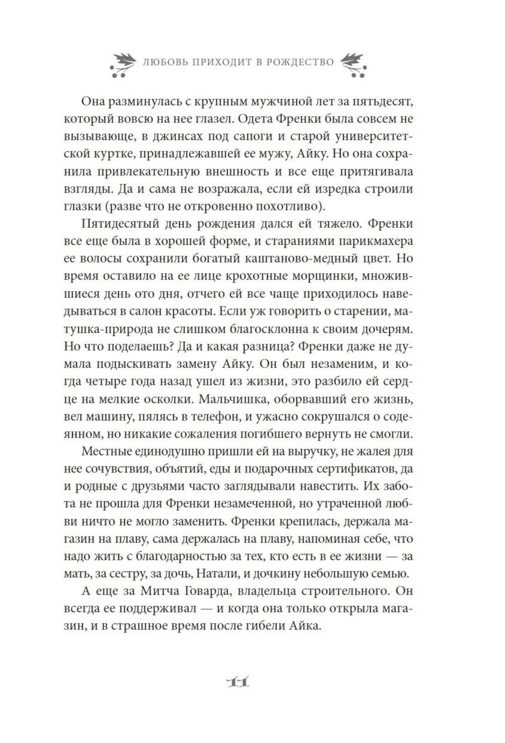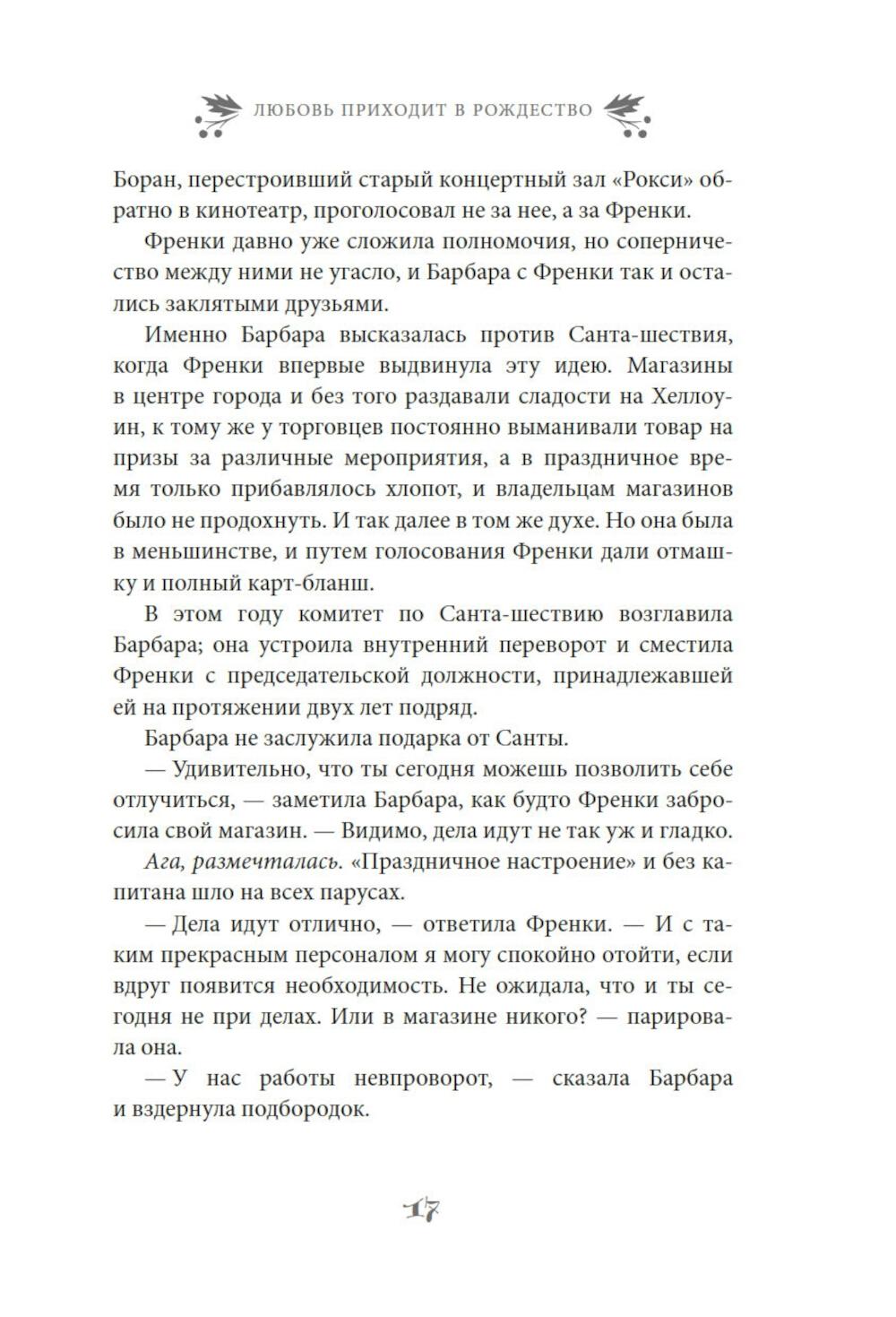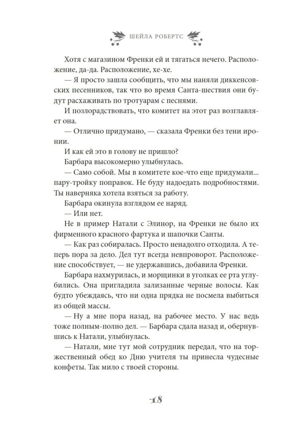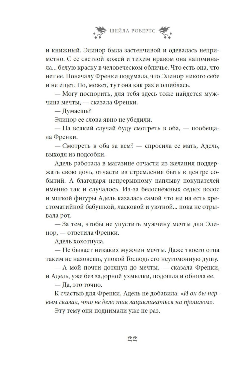 Найдется ли фраза прекраснее и романтичнее чем «и жили они долго и счастливо»? Френки Лейн, владелица магазинчика «Праздничное настроение» с уверенностью ответит, что нет. Разве только «и жили они долго и счастливо благодаря Френки Лейн». Ведь Френки знает, что лучше практически для всех ее родных и друзей. К примеру, она считает, что ее сестра Стеф еще слишком молода, чтобы отказываться от любви. Дочь Френки Натали непременно должна открыть свою кондитерскую лавку. А застенчивой Элинор нужно сменить образ. Фрэнки уверена, что могла бы помочь им всем, если бы они только позволили ей - и если бы вся ее помощь не закончилась катастрофой. А еще есть Митч Ховард - самый прекрасный мужчина на свете: спокойный, мудрый и добросердечный, - и по совместительству - лучший друг Френки. Конечно, Митчу нужна дама сердца. И Френки полна решимости найти ему эту женщину, хочет он того или нет. Но, как известно, любовь приходит в Рождество. Очаровательная рождественская история в духе «Эммы» Джейн Остин, которая искрится теплом, остроумием и счастьем.| Издательство | Азбука |