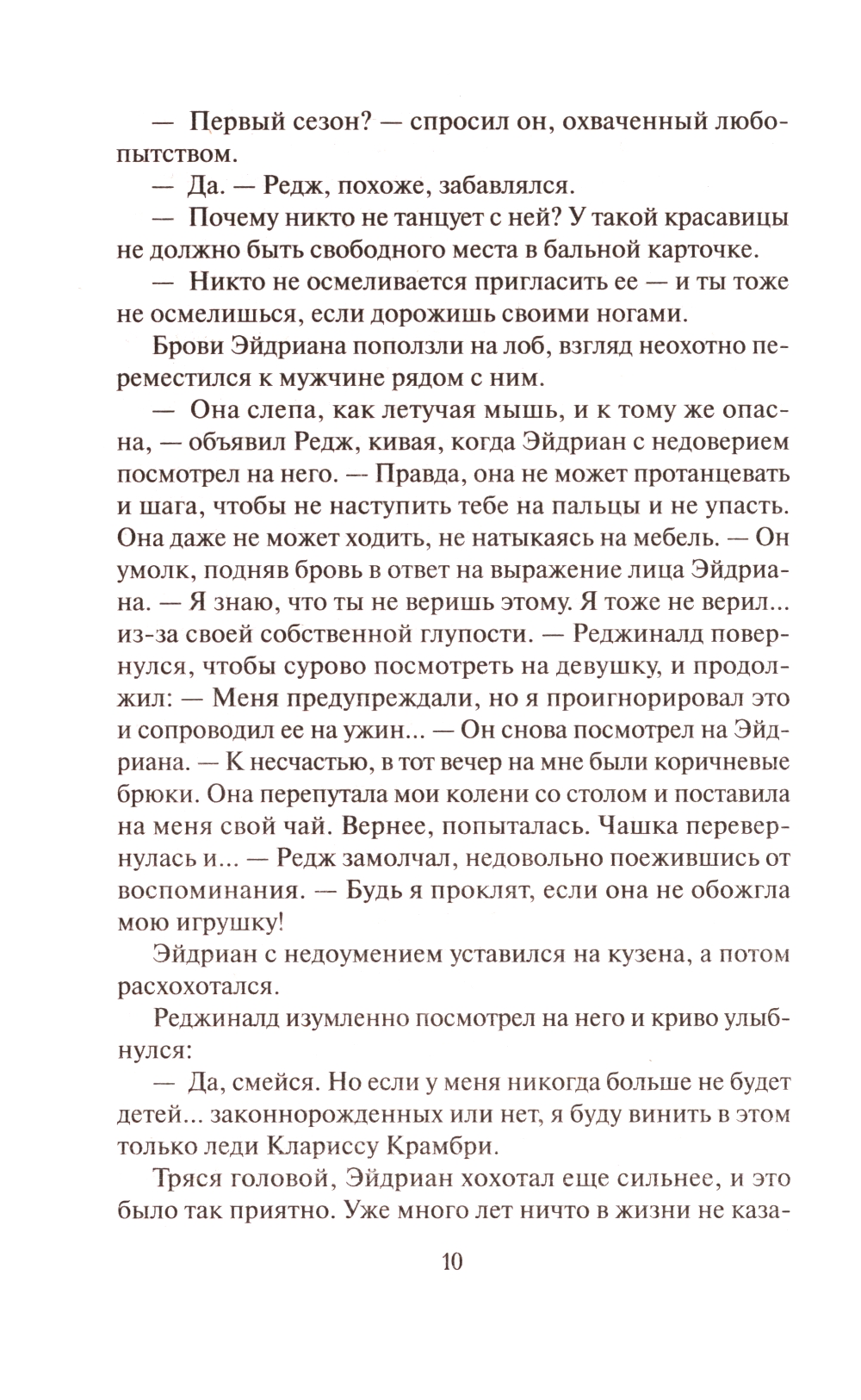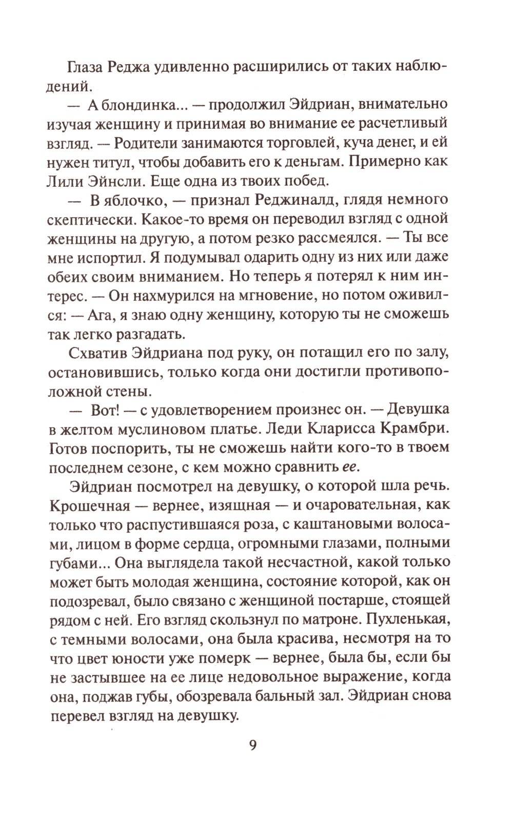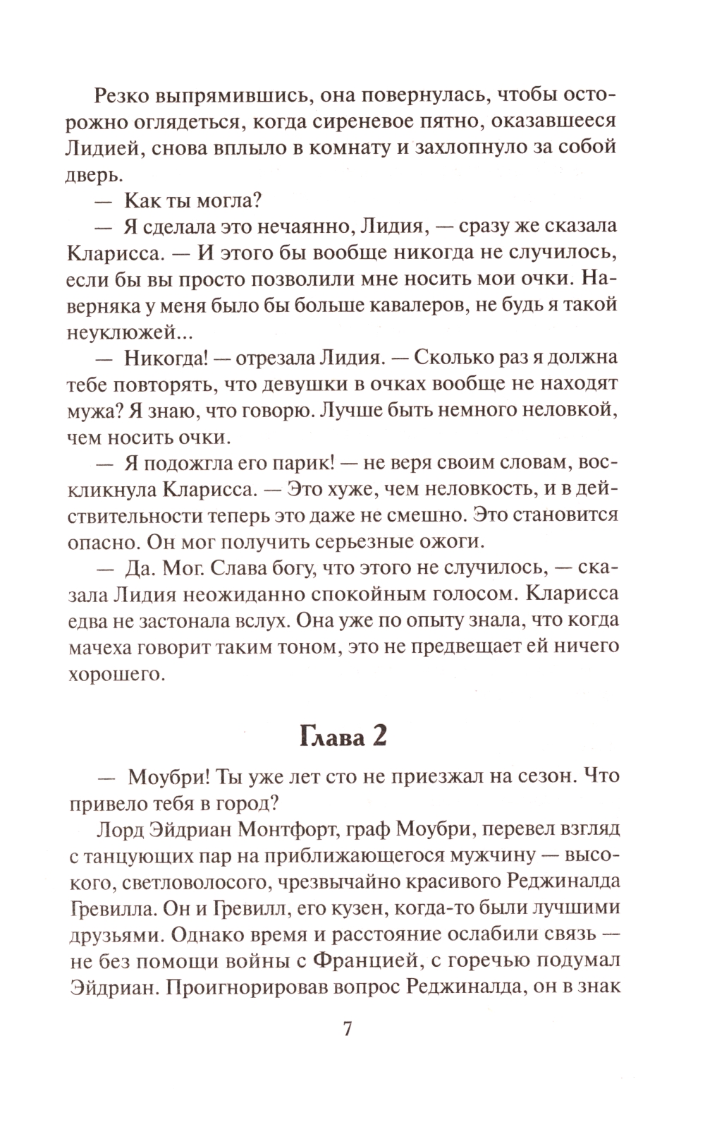 Эйдриан Монтфорт, граф Моубри, жил затворником десять лет, с тех пор как вернулся с войны, - и всему виной шрам, изуродовавший его лицо. Но графу нужен наследник - он все-таки решился выйти в свет с целью найти жену и на первом же балу повстречал юную Клариссу Камбри. Эйдриан влюбился с первого взгляда - да и Кларисса, кажется, отвечает ему взаимностью. Свадьбу сыграли поспешно и скромно. Супруги без ума друг от друга... Только вот леди практически слепа и без очков, которые у нее во время сезона отняла мачеха, не видит ничего... Не изменится ли ее отношение к нему, когда она снова обретет очки и сможет ясно его разглядеть? И не решит ли она, что он просто воспользовался ее слепотой, чтобы жениться?| Издательство | АСТ |
