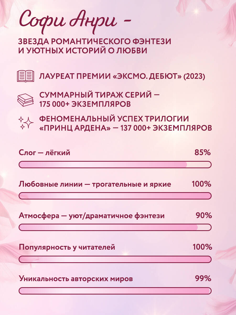 Подарочное издание двух романтических историй Софи Анри - «Двойной латте в дождливый день», «Горячий шоколад в зимнюю ночь». Уютные, нежные, веселые и трогательные, в героев влюбляешься и с ними не хочется расставаться! Суперобложка, яркое оформление, запечатанный обрез, арты внутри книги. Фишка историй: прототипами героев стали всеми нами любимые персонажи из романа «Принц Ардена». «Двойной латте в дождливый день» Айви восемнадцать, но из-за постоянных переездов у нее практически нет друзей. Первым, с кем она знакомится в новом городе, Арден-сити, становится Рэйден. Начинающий писатель и книголюб, с которым можно обсудить любые темы. У Рэйдена и Айви свои мечты и проблемы: у одного - конфликт с влиятельным отцом, у другой - травмы детства. Нашли ли они друг в друге родственную душу или все это мираж? «Горячий шоколад в зимнюю ночь» Тина учится на третьем курсе университета Арден-сити, ходит в театральный кружок и подрабатывает в библиотеке. Когда бойфренд изменяет ей с другой, девушка просит друга Зака стать ее фиктивным парнем. Зак остер на язык, дерзок, обожает рок и не доверяет девушкам. Но в Тине он видит прекрасного ангела и зовет ее Мотылек. Невинная просьба будет стоить обоим разбитых сердец: дружба перерастет в нечто большее, к чему оба совсем не готовы… В книге вас ждут: - Бонусные главы о героях, не включенные в основные издания! - Арты с портретами героев и их страничками в соц.сетях: узнай новую информацию о каждом любимчике! - Рецепты двойного латте и горячего шоколада Софи Анри. - Выдержка из романа авторства Рэйдена, сет-лист песен группы Зака с подписями участников группы. - Арты со сценами из романа, которые не были включены в оформление основных изданий!| Издательство | ООО "Издательство "Эксмо" |