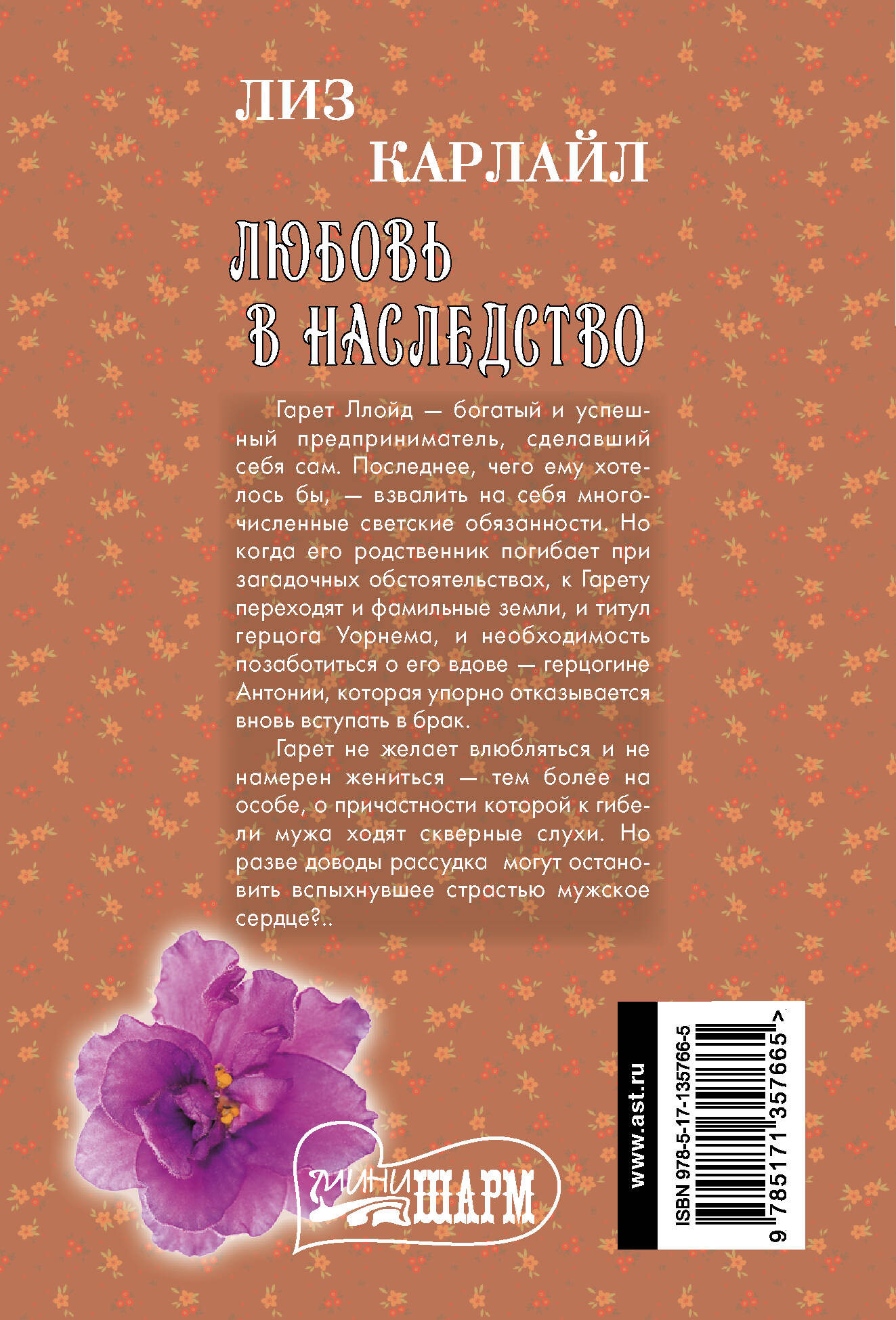 Гарет Ллойд - богатый и успешный предприниматель, сделавший себя сам. Последнее, чего ему хотелось бы, - взвалить на себя многочисленные светские обязанности. Но когда его родственник погибает при загадочных обстоятельствах, к Гарету переходят и фамильные земли, и титул герцога Уорнема, и необходимость позаботиться о его вдове - герцогине Антонии, которая упорно отказывается вновь вступать в брак. Гарет не желает влюбляться и не намерен жениться - тем более на особе, о причастности которой к гибели мужа ходят скверные слухи. Но разве доводы рассудка могут остановить вспыхнувшее страстью мужское сердце?..| Издательство | Издательство "АСТ" |
