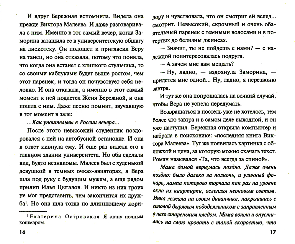 Известный писатель Виктор Малеев убит точно так же, как один из персонажей его романа. В отличие от следователей частный детектив Вера Бережная не считает это случайностью и ищет корни преступления в прошлом. Оно у популярного писателя оказывается темным: и «работа» каталой, и приятельство с вором в законе, и громадные карточные долги. А еще выясняется, что романы Малеева написаны совсем другим человеком - так не он ли автор и этого убийства?| Издательство | Эксмо |