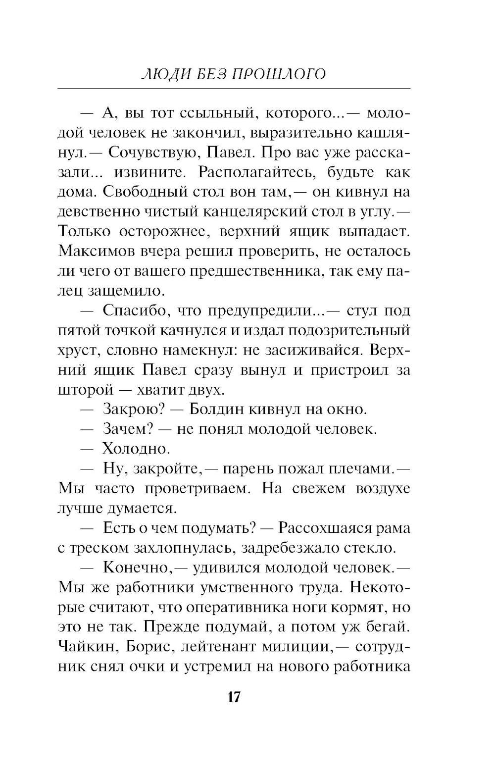 1970 год. Размеренную жизнь провинциального Плиевска внезапно нарушает череда жестоких убийств. Все жертвы - малозаметные мужчины, живущие в городке недавно. Именно это и настораживает старшего лейтенанта угро Павла Болдина: чем привлекли убийцу простые работяги? Павел пытается подробнее узнать биографии погибших, но странно - истории их жизни до приезда в Плиевск словно растворяются в тумане… Новым потрясением становится убийство начальника угро. А вот это уже настоящий вызов органам правопорядка! Болдин понимает, что преступник намеренно перешел последнюю черту, за которой уже нет ни правил, ни логики, ни сострадания…| Издательство | Эксмо |