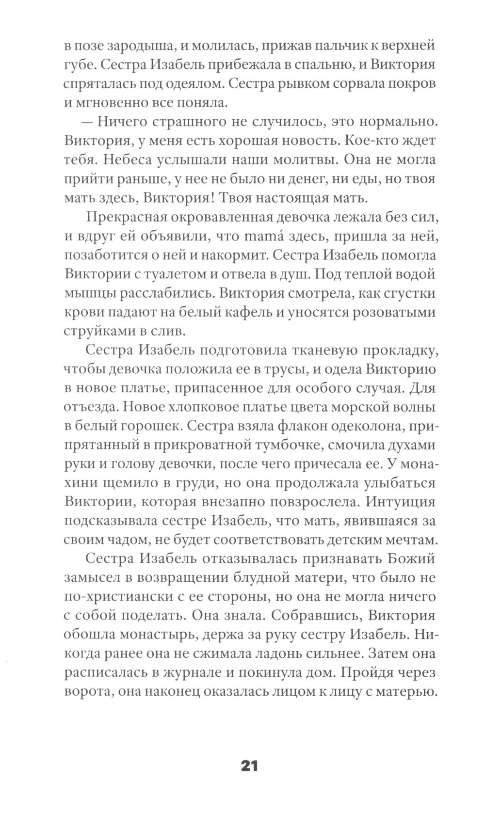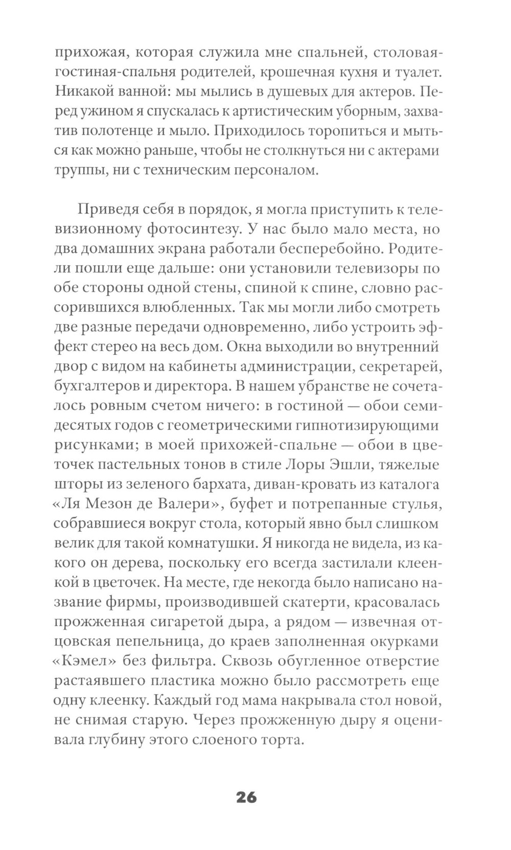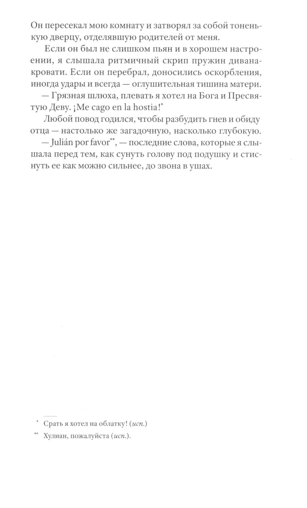 Детство Марии, дочери эмигрантов из Бильбао, прошло за кулисами парижского театра Мишодьер, среди актеров, костюмов и декораций: ее отец Хулиан - баск с взрывным характером, коллекцией оружия и пристрастием к алкоголю - работает здесь хранителем, а мать Виктория - некогда неотразимая галисийка, встречающая вспышки ярости мужа покорным молчанием, - уборщицей. Взрослея, Мария отдаляется от семьи, учится на кинорежиссера, влюбляется, делает карьеру - в общем, живет своей жизнью. Пока случайно не узнает, что эта жизнь построена на лжи, а у Виктории и Хулиана есть один большой секрет. В поисках правды Мария возвращается в Страну Басков, погружается в запутанные коррупционные схемы постфранкистского периода, полностью переосмысляет отношения с родителями и решает рассказать свою историю необычным для кинематографиста способом - написав роман, в котором ловкие монтажные склейки будут переносить читателя из рыбацкой деревни в Галисии в злачные районы Бильбао; из иезуитского приюта для бедняков в богемные бары Парижа; с театральной сцены, где разыгрывают бульварные комедии, на арену кровавой корриды. Дебютный роман Марии Ларреа, основанный на истории ее семьи, был удостоен ряда французских и испанских литературных премий, в том числе Prix du Premier Roman и Prix Roman France Televisions. По книге был поставлен моноспекталь с Беренис Бежо.| Издательство | Подписные издания |