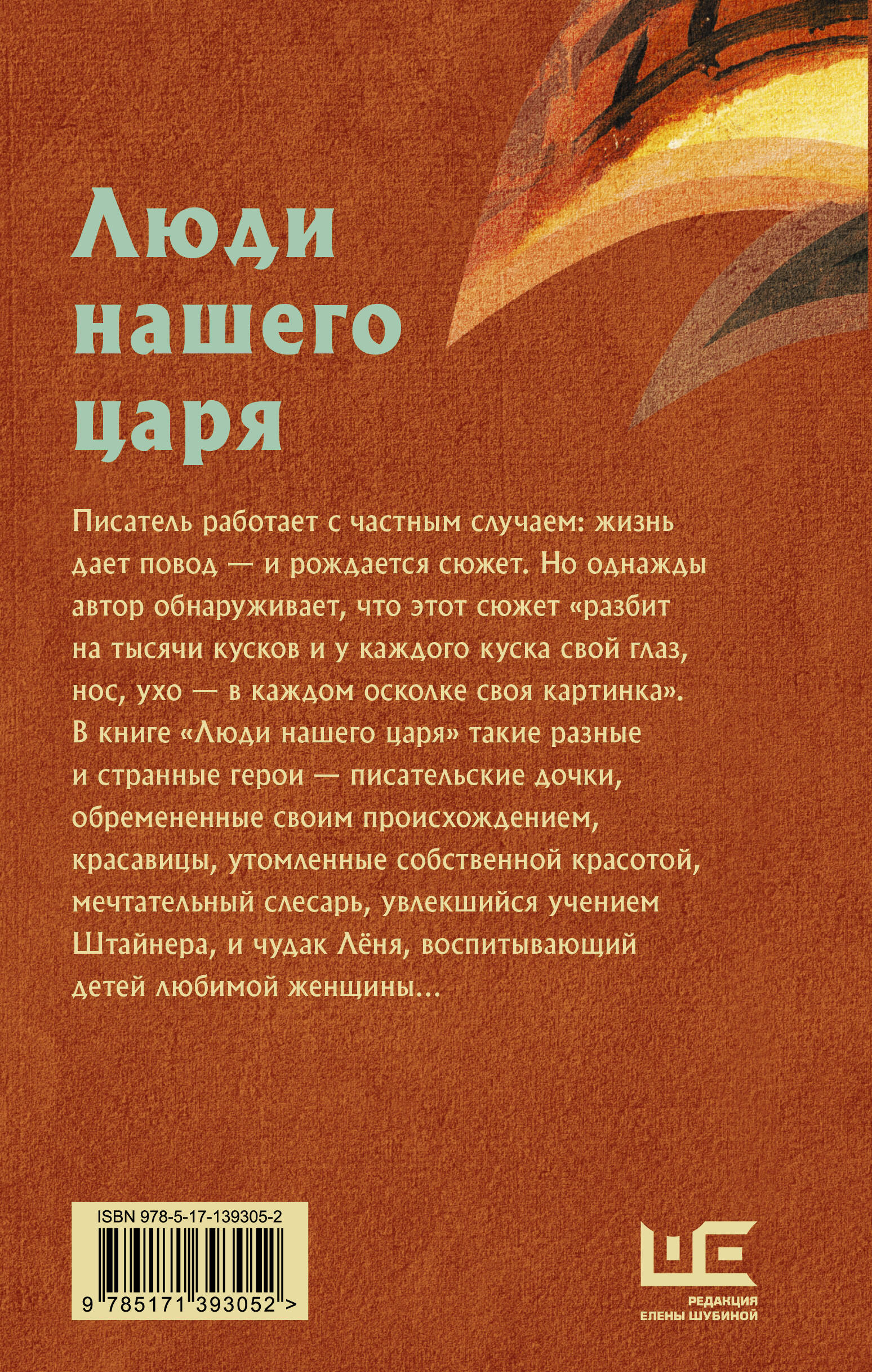 Писатель работает с частным случаем: жизнь дает повод - и рождается сюжет. Но однажды автор обнаруживает, что этот сюжет "разбит на тысячи кусков и у каждого куска свой глаз, нос, ухо - в каждом осколке своя картинка". В книге "Люди нашего царя" такие разные и странные герои - писательские дочки, обремененные своим происхождением, красавицы, утомленные собственной красотой, мечтательный слесарь, увлекшийся учением Штайнера, и чудак Лёня, воспитывающий детей любимой женщины…| Издательство | ИЗДАТЕЛЬСТВО "АСТ" |