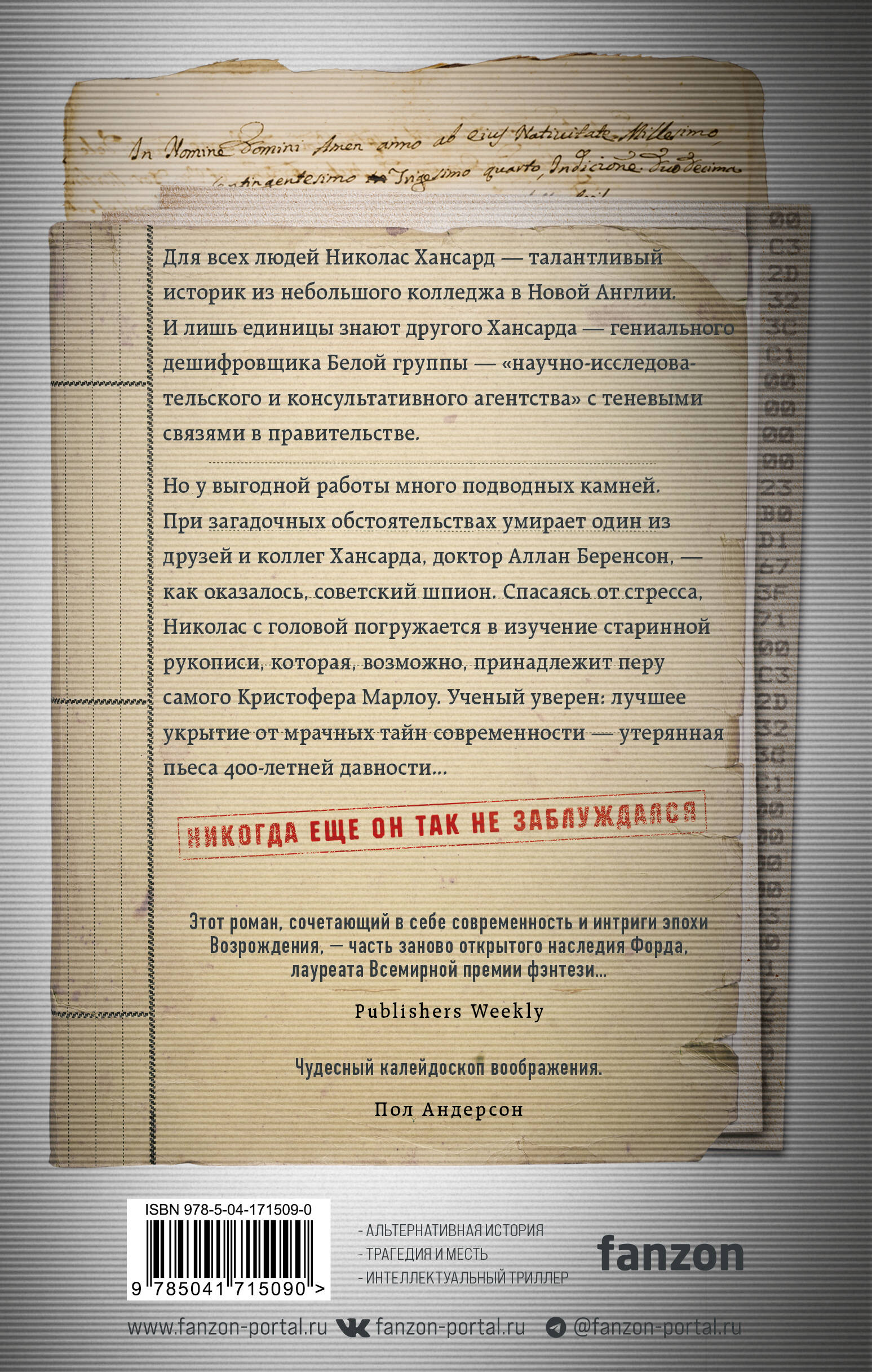 «Люди ночи» Джона М. Форда - экстраординарный роман об игре разведок и человеческом предательстве, сплетающий прошлое и настоящее в атмосфере саспенса. Николас Хансард - талантливый историк из небольшого колледжа в Новой Англии. Это внешняя часть его карьеры, а скрытая состоит в работе на Белую группу - «научно-исследовательское и консультативное агентство» с теневыми связями в правительстве. В сотрудничестве с ними Хансард разоблачает тайны старых и новых документов - и проявляет себя как гениальный дешифровщик. Но у выгодной работы много подводных камней. Благодаря ей выясняется: один из друзей и коллег Хансарда, доктор Аллан Беренсон - русский шпион. А затем Беренсон умирает при загадочных обстоятельствах. Потрясëнный Хансард совершает побег в мир литературы и погружается в изучение старинной рукописи, которая, возможно, принадлежит перу самого Кристофера Марло. Учëный уверен: нигде нельзя надëжней укрыться от мрачных тайн и убийств современности, нежели в утерянной пьесе 400-летней давности... Никогда ещë он так не заблуждался. «"Люди ночи" - роман в духе британских шпионских триллеров середины века, без фантастических допущений, зато с утерянной пьесой Кристофера Марло в центре сюжета. С точки зрения маркетинга - это книга уровня "Имени розы". Достаточно сказать: "У нас есть чертовски гениальный писатель, который в своей книге соединил высокую культуру с низкой"». - Нил Гейман «Этот роман, сочетающий в себе современность и интриги эпохи Возрождения, - часть заново открытого наследия Форда, лауреата Всемирной премии фэнтези… Форд превращает исторические спекуляции о Марлоу и заговоре с целью убийства королевы Елизаветы в причудливую смесь смертельной игры и высоких технологий - в то, что полюбится как любителям шпионских романов, так и ценителям альтернативных жанров». - Publishers Weekly «В этой книге, полной чёрного юмора и динамичных схваток, с определённым космополитическим весом и подкованностью в вопросах этики и утилитаризма, - нет ничего лишнего: только чередование трогательных и драматичных сцен со злым экшеном». - Locus «Прямое попадание в мир смерти и предательства. Тонкая художественная работа Форда, хитрая и сложная». - The MYSTERY FANcier «Сюжет с лёгкой примесью Тома Клэнси, но стиль - целиком и полностью Джона М. Форда. В романе все необходимые элементы триллера собраны в более или менее привычную схему, но выстраиваются под таким странным углом, что образуют нечто совершенно иное». - Science Blogs «Чудесный калейдоскоп воображения». - Пол Андерсон «Экстраординарный... одновременно оригинальный и ослепительный». - The Cleveland Plain Dealer| Издательство | ООО "Издательство "Эксмо" |