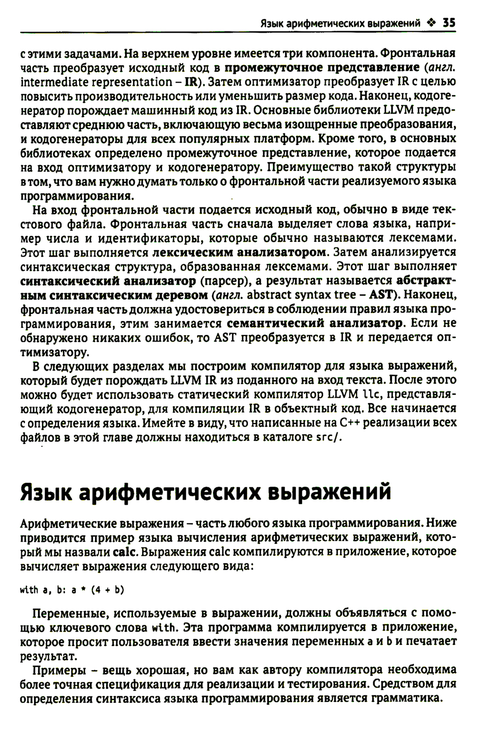 Перед вами руководство по LLVM 17 - системе разработки компиляторов и сопутствующих библиотек на C++. Вы узнаете, как написать и использовать реальные компиляторы, включая фронтальную часть, конвейер оптимизации и кодогенератор. Книга ориентирована на разработчиков компиляторов, энтузиастов и инженеров, только начинающих знакомство с LLVM. Также будет полезна программистам на C++, которые хотели бы использовать в своей работе инструменты для анализа улучшения кода.| Издательство | ДМК |