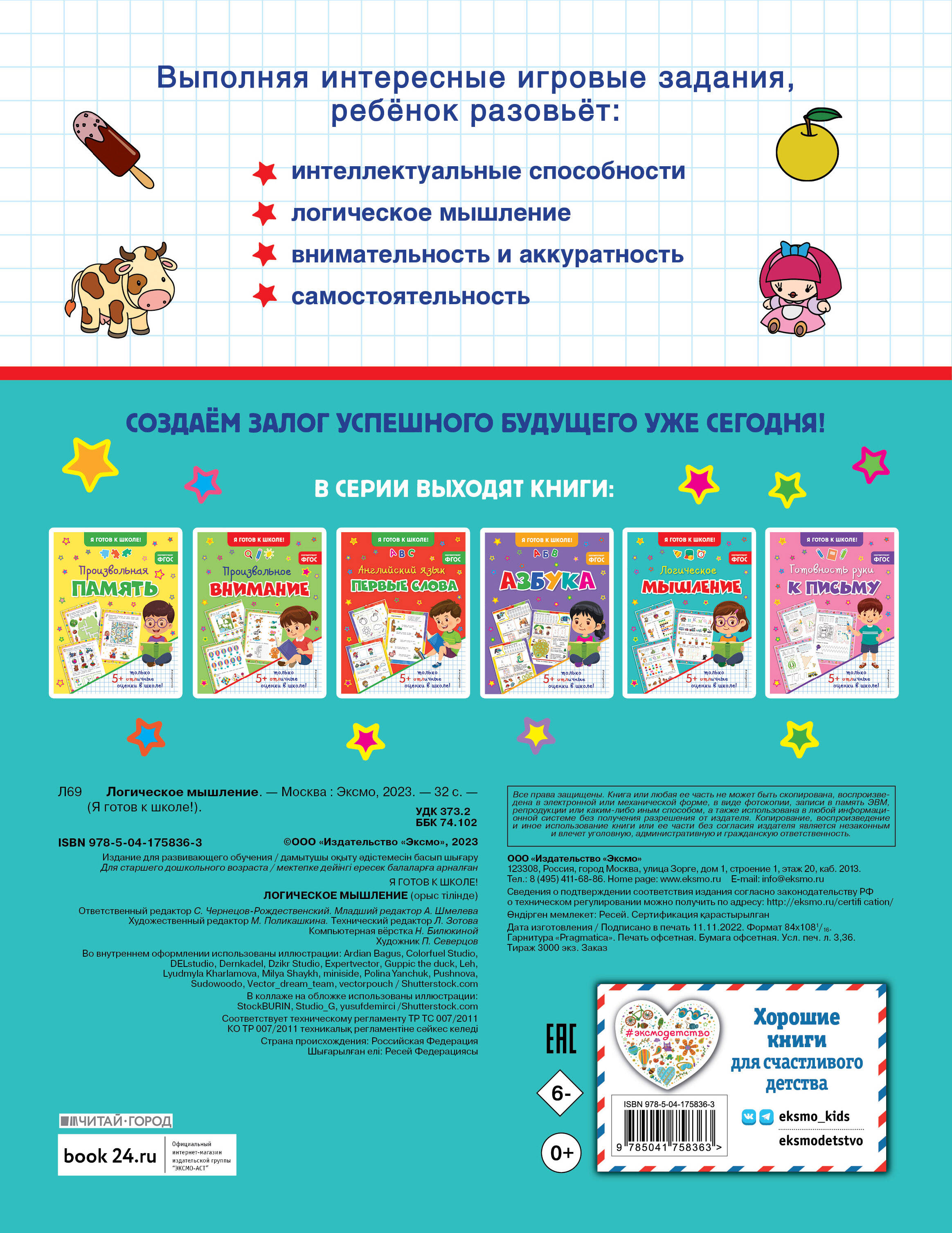 Логическое мышление - это не врождённый талант, а навык, который необходимо развивать с детства. Умея правильно рассуждать, ребёнок всегда сумеет выделить в потоке информации всё самое важное, осмыслить это, спрогнозировать последствия и принять взвешенное, логичное решение. А поскольку в дошкольном возрасте ведущей деятельностью является не учёба, а игра, то все задания носят игровой характер и красочно проиллюстрированы. Внимательный ребёнок быстро ухватит суть заданий и найдёт рациональный способ их выполнения. В результате он научится анализировать вводные данные, сравнивать и обобщать, находить причинно-следственные связи и делать обоснованные выводы.| Издательство | ООО "Издательство "Эксмо" |