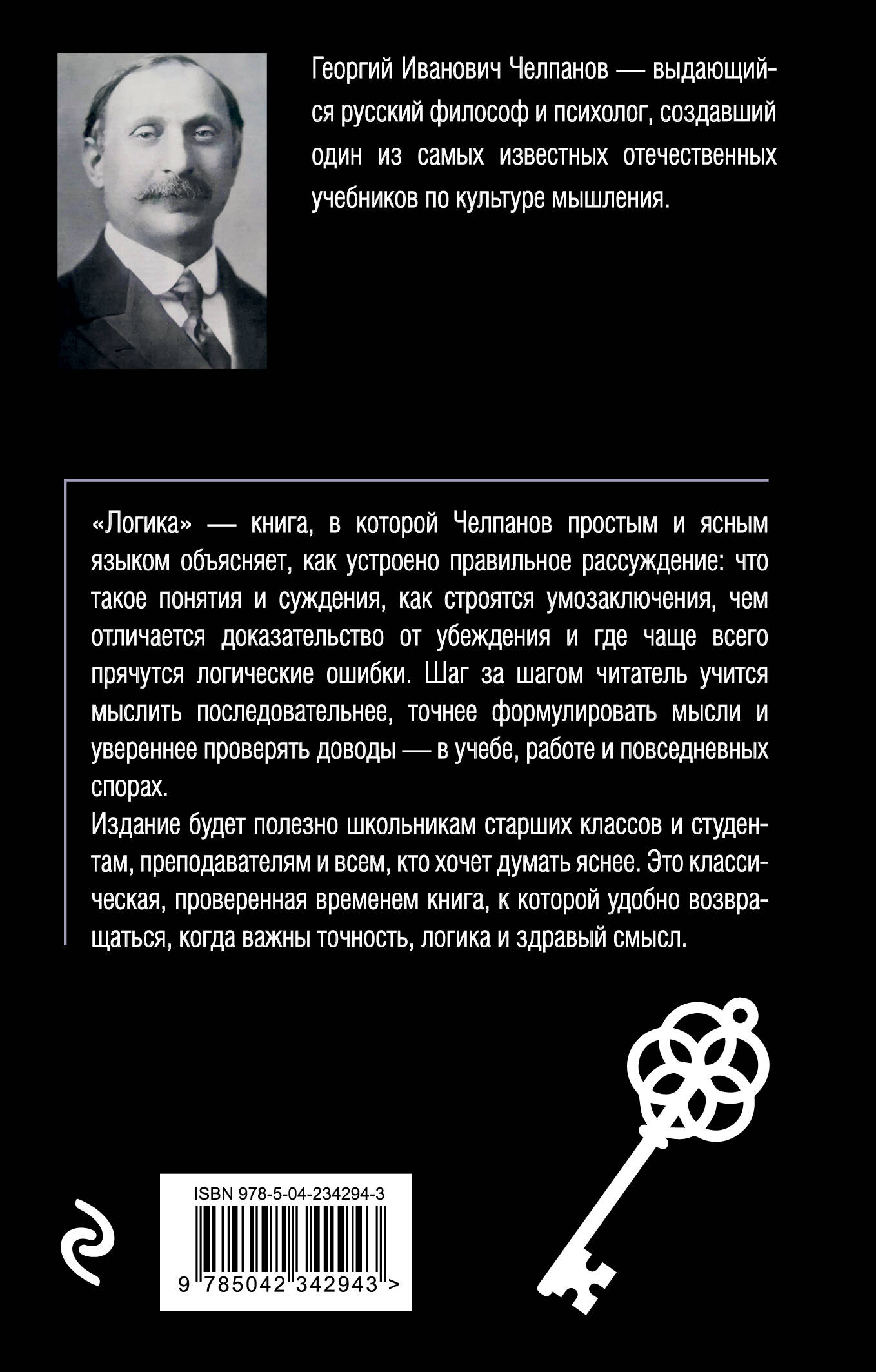 «Логика» Георгия Челпанова - классический учебник, который учит мыслить ясно, доказывать убедительно и отличать истину от правдоподобной ошибки. Это простое и наглядное руководство по законам рассуждения, написанное доступным языком и насыщенное примерами, поэтому оно читается не как сухая теория, а как практическая школа мышления. В книге вы найдете ответы на вопросы: - Как устроены понятия, суждения и умозаключения - и почему без них невозможна ясная мысль? - По каким правилам строится доказательство и как проверять аргументы? - Какие логические ошибки встречаются чаще всего - и как их распознавать в споре и тексте? - Чем отличается правильное рассуждение от убедительной, но неверной риторики? - Как развить привычку мыслить последовательно и не попадаться на противоречия? Книга пригодится школьникам старших классов и студентам, преподавателям, юристам, журналистам, исследователям и всем, кто работает с текстами, аргументами и решениями. Для читателей, интересующихся философией, самообразованием и критическим мышлением, «Логика» Челпанова станет надежной основой, к которой хочется возвращаться снова и снова.| Издательство | ООО "Издательство "Эксмо" |