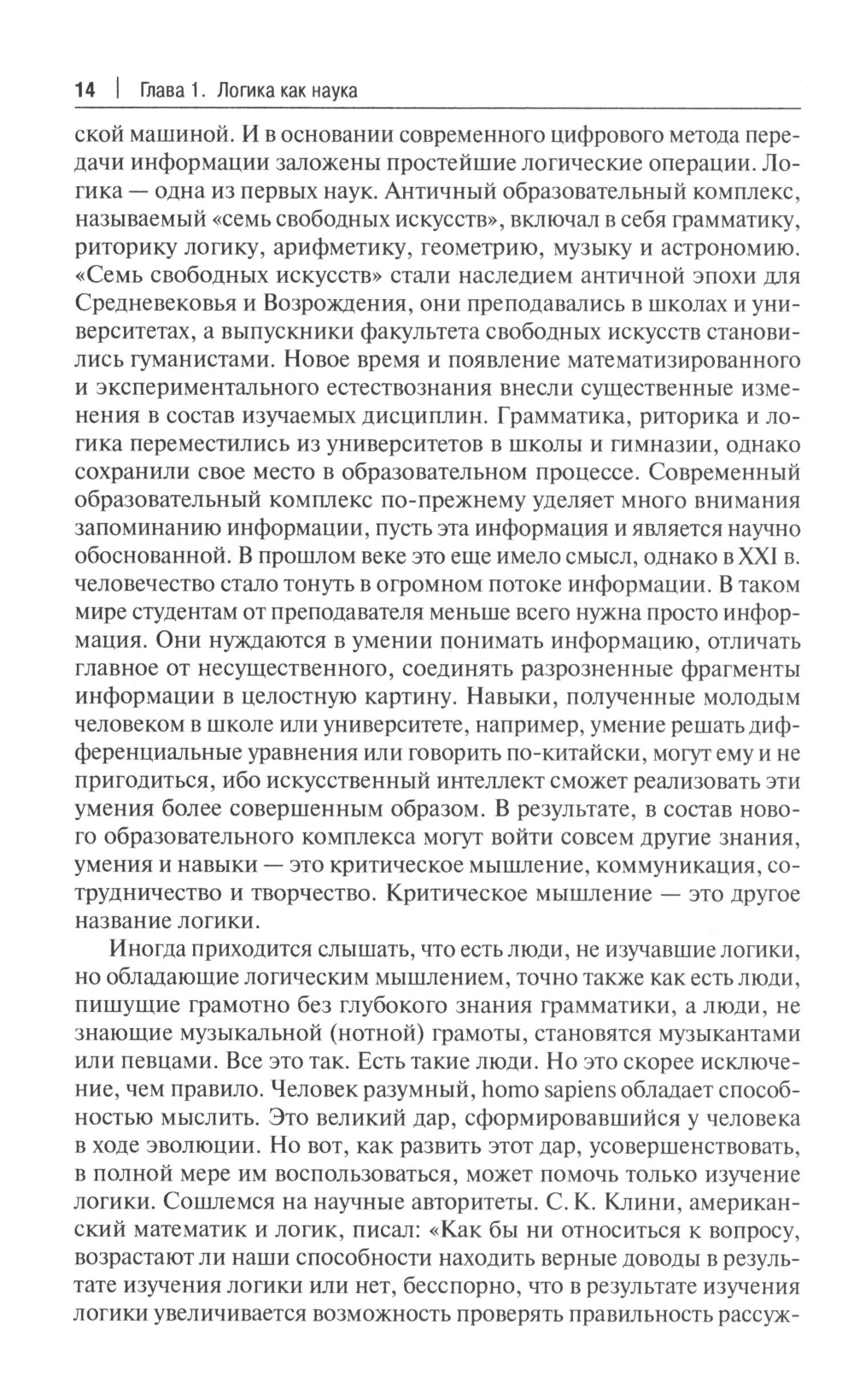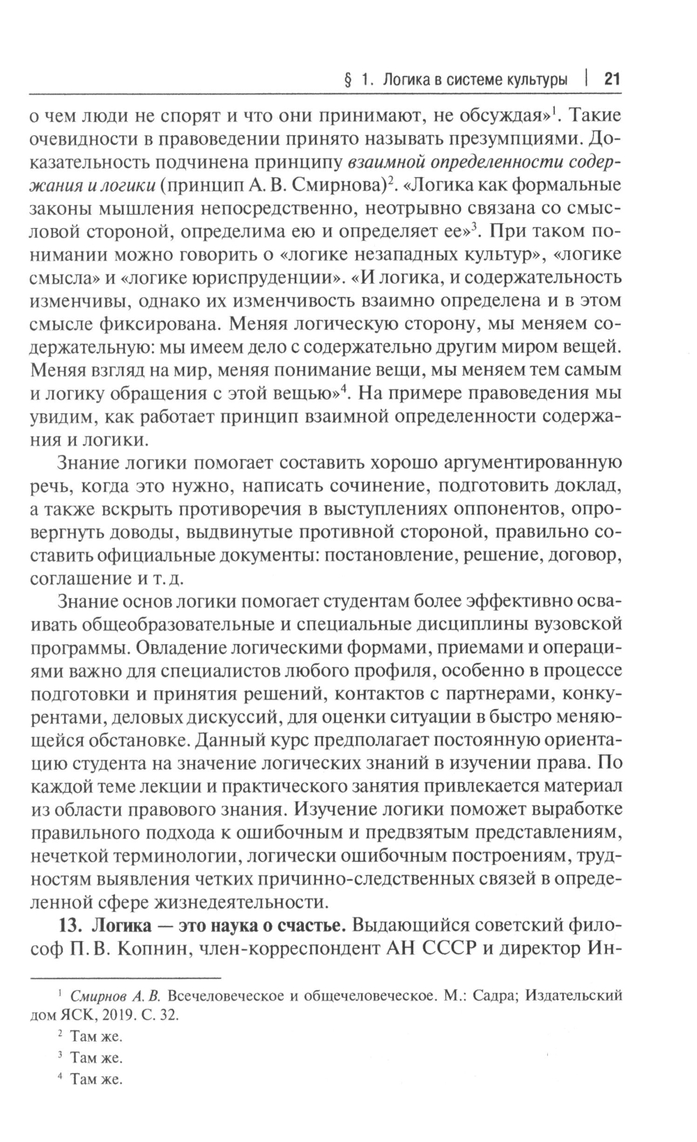 В предлагаемом учебнике излагаются основы логики, как традиционной, так и современной. Основные темы курса рассмотрены в следующем порядке: логика как наука (предмет логики, история логики, логическая форма мышления), логика как методология (понятие метода и методологии, законы логики, принципы логического анализа языка), понятие, суждение и умозаключение, логика высказываний и логические основы аргументации. Особое внимание уделено месту логики в системе философского и правового знания, раскрытию понятия логической культуры и ее значения для профессионального становления юриста. Учебник содержит практические задания (вопросы и задачи) по всем изучаемым темам. Для обучающихся по образовательным программам высшего образования в рамках УГСН 40.00.00 «Юриспруденция», преподавателей дисциплин логического цикла, а также учащихся других образовательных организаций.| Издательство | Проспект |