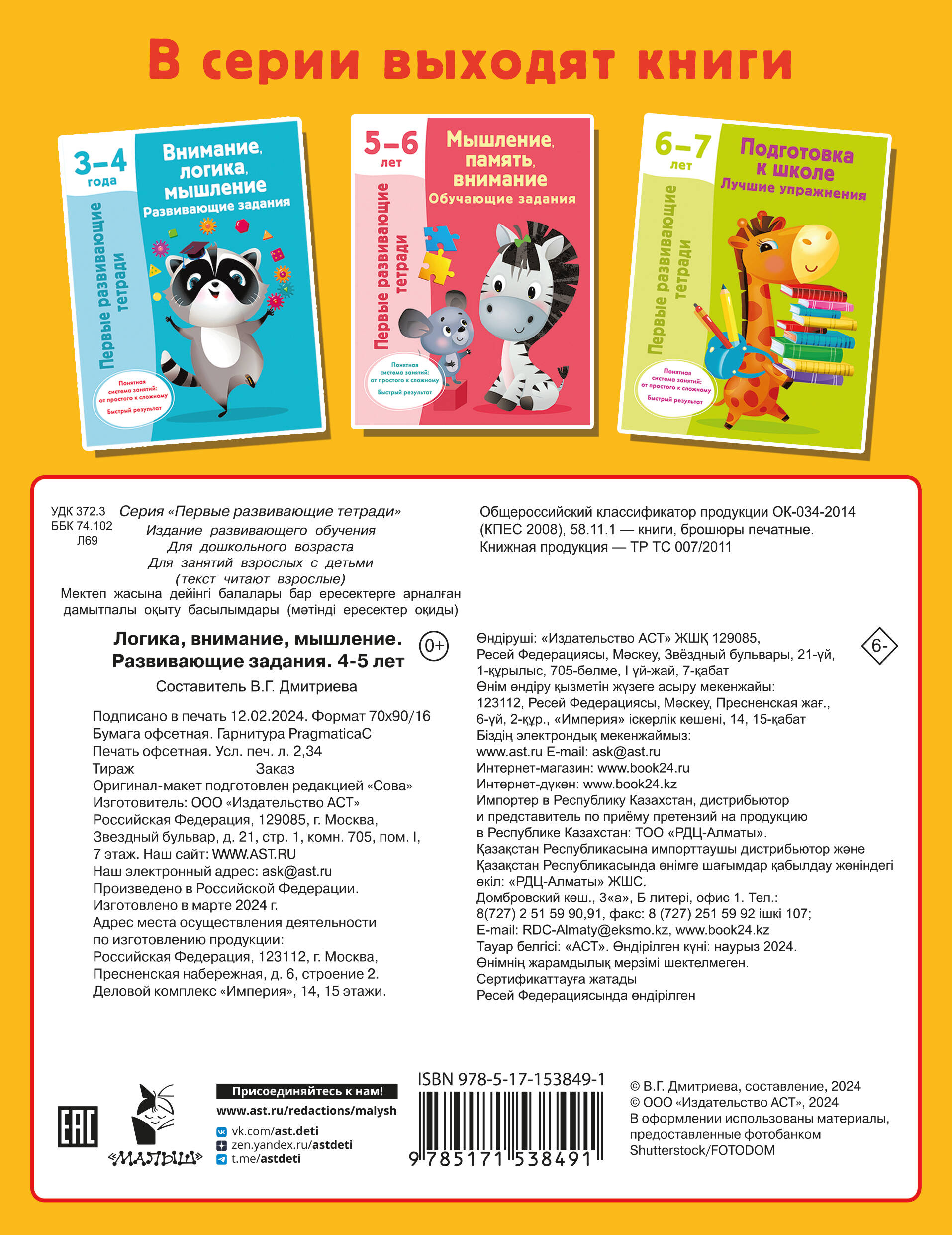 Аннотация: Логика, внимание, мышление. Развивающие задания. 4-5 лет