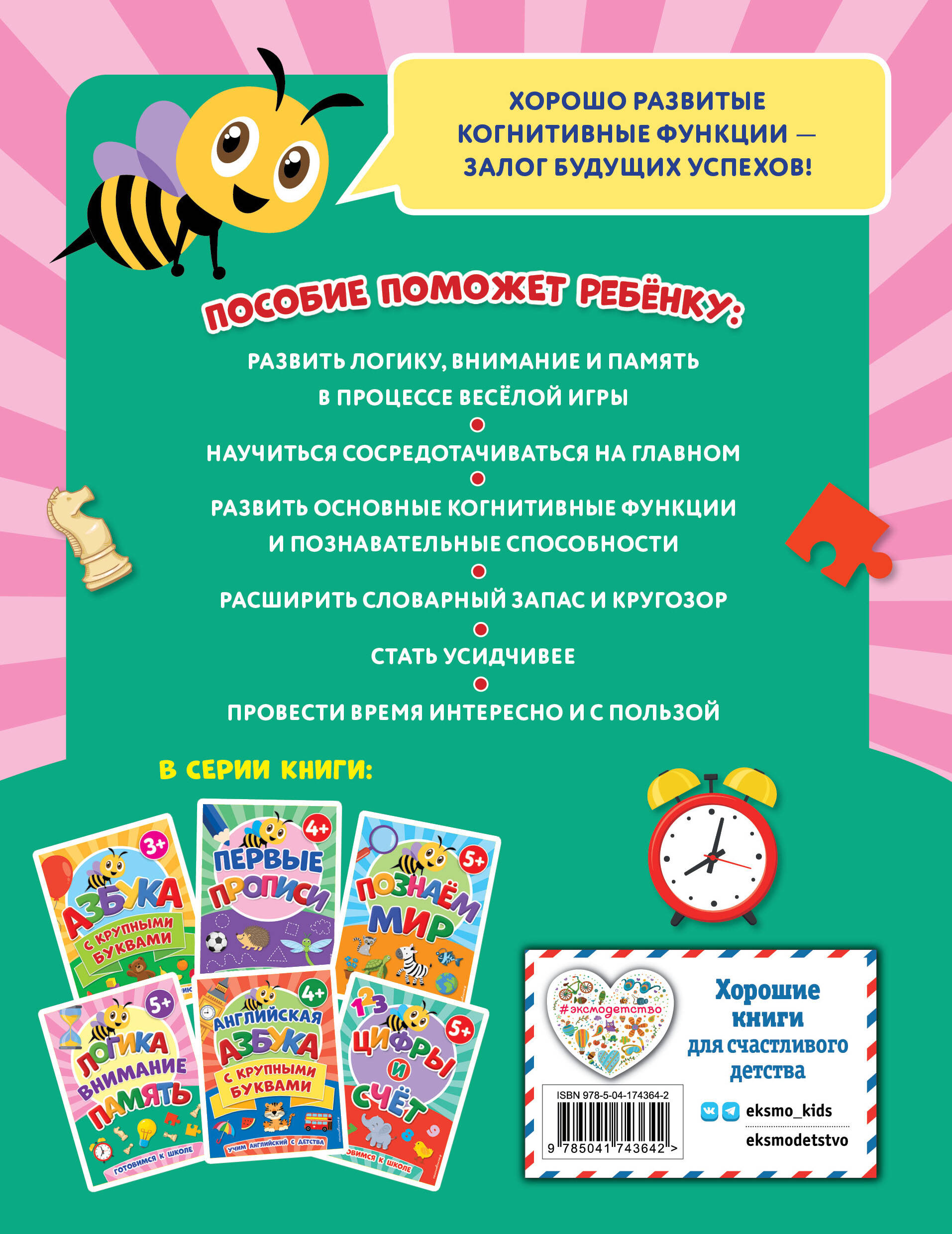 Хорошо развитые когнитивные функции - залог будущих успехов ребенка в дальнейшем обучении. Прекрасно иллюстрированное красочное пособие адаптировано к требованиям конкретного возраста, учитывает особенности современных детей и предлагает эффективное решение для раннего развития и обучения ребенка. Занимаясь, дошкольник будет находить логические пары и лишний предмет в ряду, подбирать пазлы и составлять целое из половинок, заполнять логические квадраты, решать ребусы, проходить лабиринты, а также сможет развить память и внимание. У ребенка сформируются необходимые навыки, его мозг научится сравнивать, анализировать, выделять и запоминать информацию. Простота и доступность предлагаемого материала позволит дошкольнику быстро справиться с заданиями и создаст положительный настрой к обучению.| Издательство | ООО "Издательство "Эксмо" |