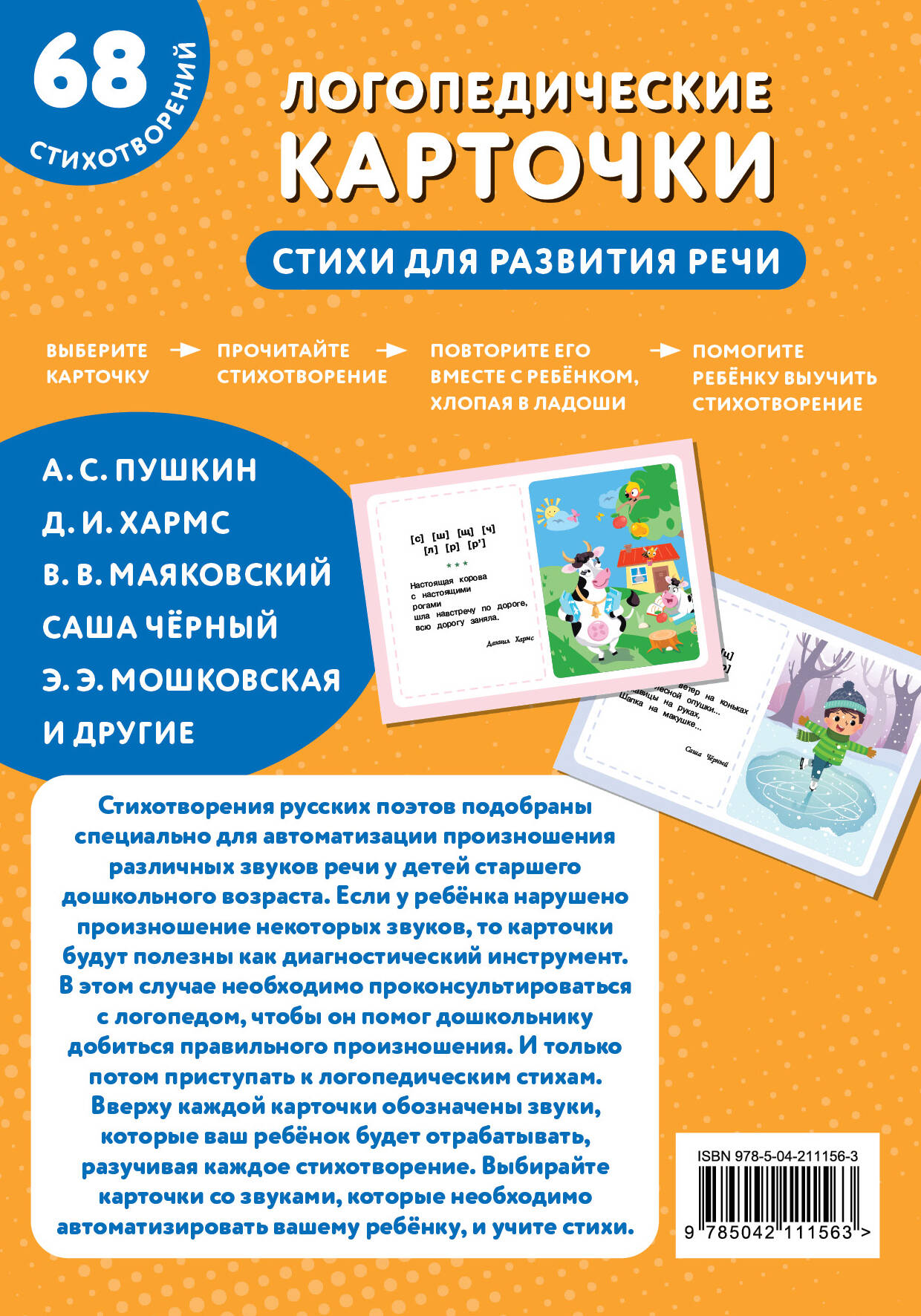 Пособие под редакцией опытного педагога-логопеда С. В. Батяевой предназначено для развития речи детей дошкольного возраста. В комплекте 34 плотные двусторонние логопедические карточки со стихами русских поэтов, которые подобраны специально для автоматизации произношения детьми различных звуков речи. Если ребёнок хорошо выговаривает все звуки, то стихи помогут ему улучшить дикцию, выработать чувство ритма и развить память. Если у ребёнка нарушено произношение некоторых звуков, то карточки будут полезны, как диагностический инструмент. В этом случае необходимо проконсультироваться с логопедом, чтобы он помог дошкольнику добиться правильного произношения. И только потом приступать к логопедическим стихам. Они помогут закрепить в речи ребёнка звуки, которые он научился произносить правильно. Вверху каждой карточки обозначены звуки, которые ваш ребёнок будет отрабатывать, разучивая каждое стихотворение. Чаще всего отрабатывается сразу несколько звуков. Выбирайте карточки со звуками, которые необходимо автоматизировать вашему ребёнку, и учите стихи. Это будет самой лучшей тренировкой речевого аппарата дошкольника и поможет ему стать не только обладателем правильной и красивой речи, но и пополнить словарный запас, развить память, стать более эрудированным.| Издательство | ООО "Издательство "Эксмо" |