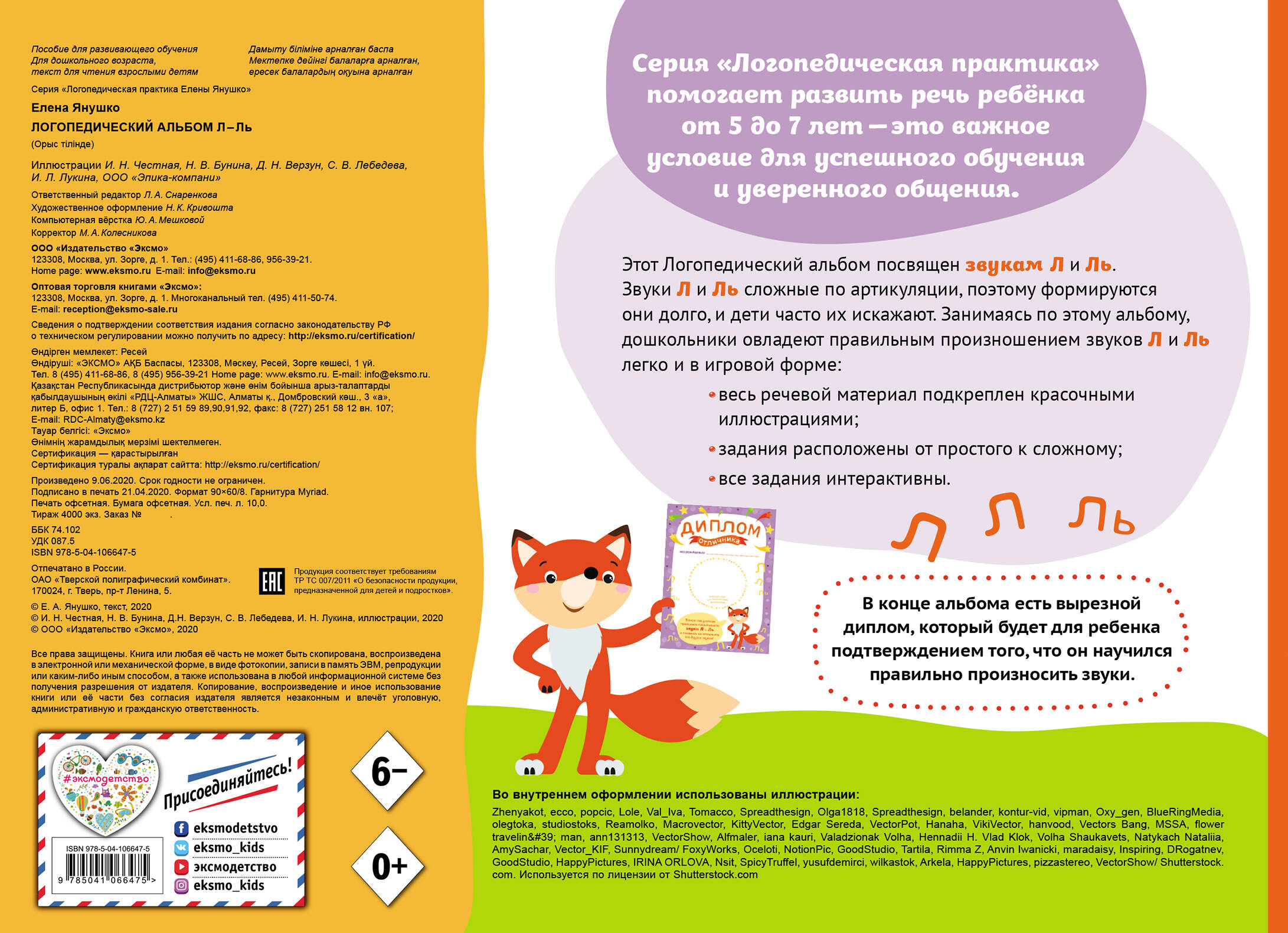 С этим Логопедическим альбомом ваш ребенок в домашних условиях овладеет правильным произношением звуков Л и Ль! В нем содержится 80 упражнений и заданий. Альбомы серии"Логопедическая практика" не требуют дополнительных пособий: - все задания подкреплены иллюстрациями; - на последней странице размещена раскраска по номерам - ее детали ребенок закрашивает по мере выполнения заданий; - на внутренней стороне обложки есть иллюстрированная речевая гимнастика, которую рекомендовано выполнять перед каждым занятием; - в конце альбома - вырезной диплом, подтверждающий, что ребенок научился произносить звуки Л и Ль.| Издательство | ООО "Издательство "Эксмо" |