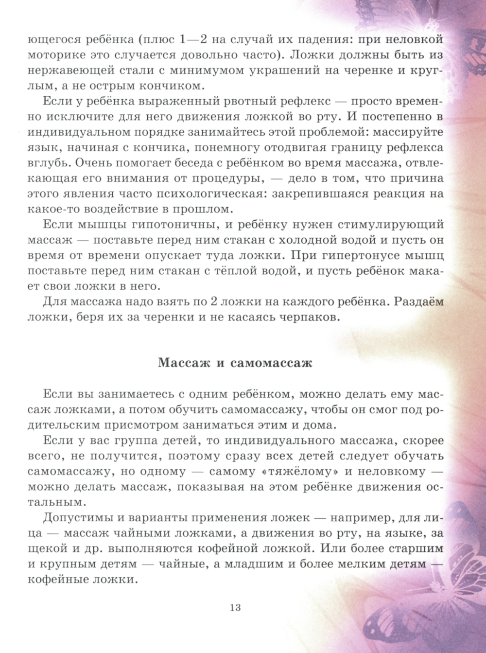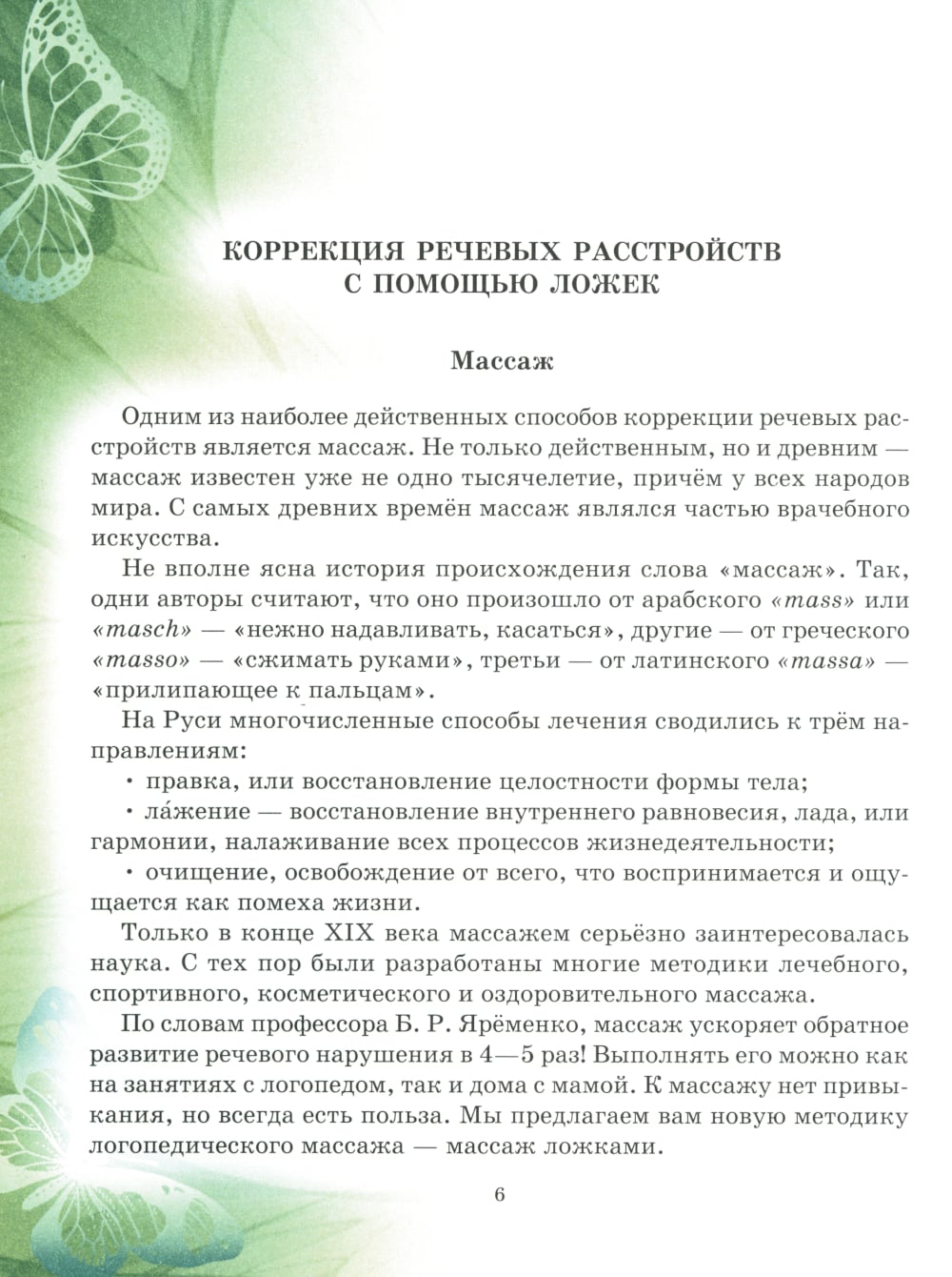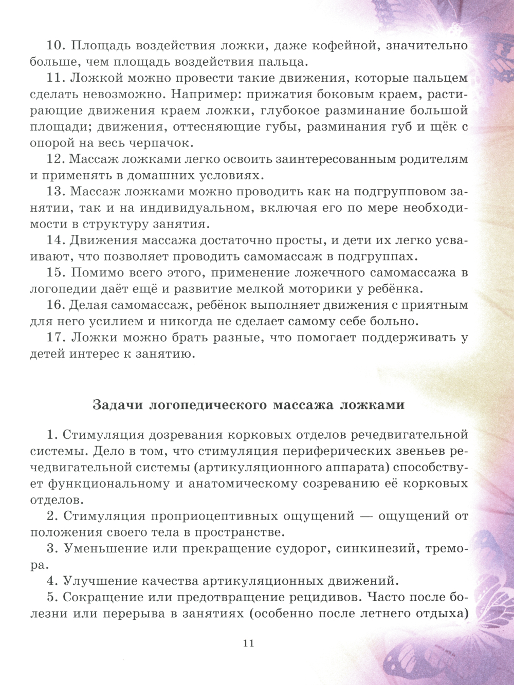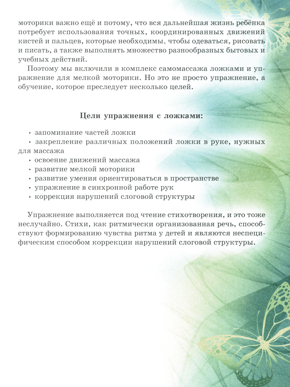 Одним из наиболее действенных способов коррекции речевых расстройств является логопедический массаж. В книге предложена новая методика логопедического массажа - массаж ложками, который имеет ряд преимуществ. Во-первых, он помогает избежать отрицательной реакции на зондовый массаж, во-вторых, его легко могут освоить заинтересованные родители и применять в домашних условиях, в-третьих, движения массажа достаточно просты, что позволяет обучить детей самомассажу. Все действия с ложками выполняются в сопровождении стихотворений, которые не только задают ритм движения и определяют последовательность действий, но и описывают сами движения, что очень полезно для детей с недоразвитием речи. Для детей и родителей, логопедов.| Издательство | ИД ЛИТЕРА |