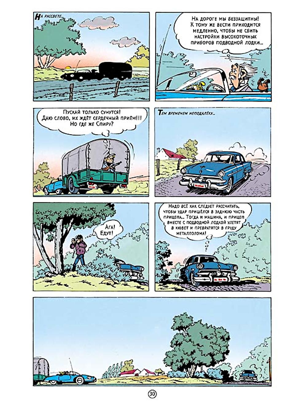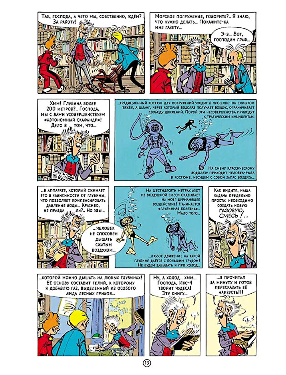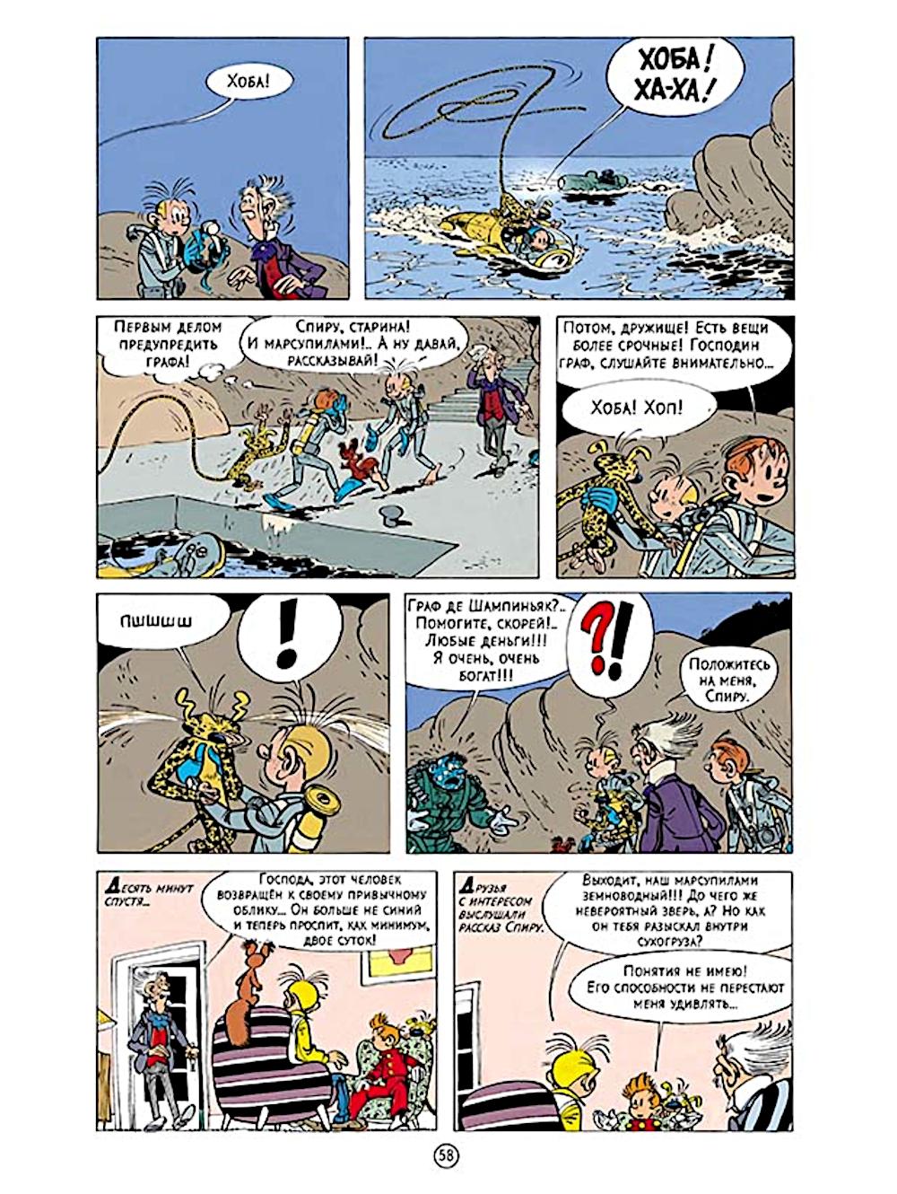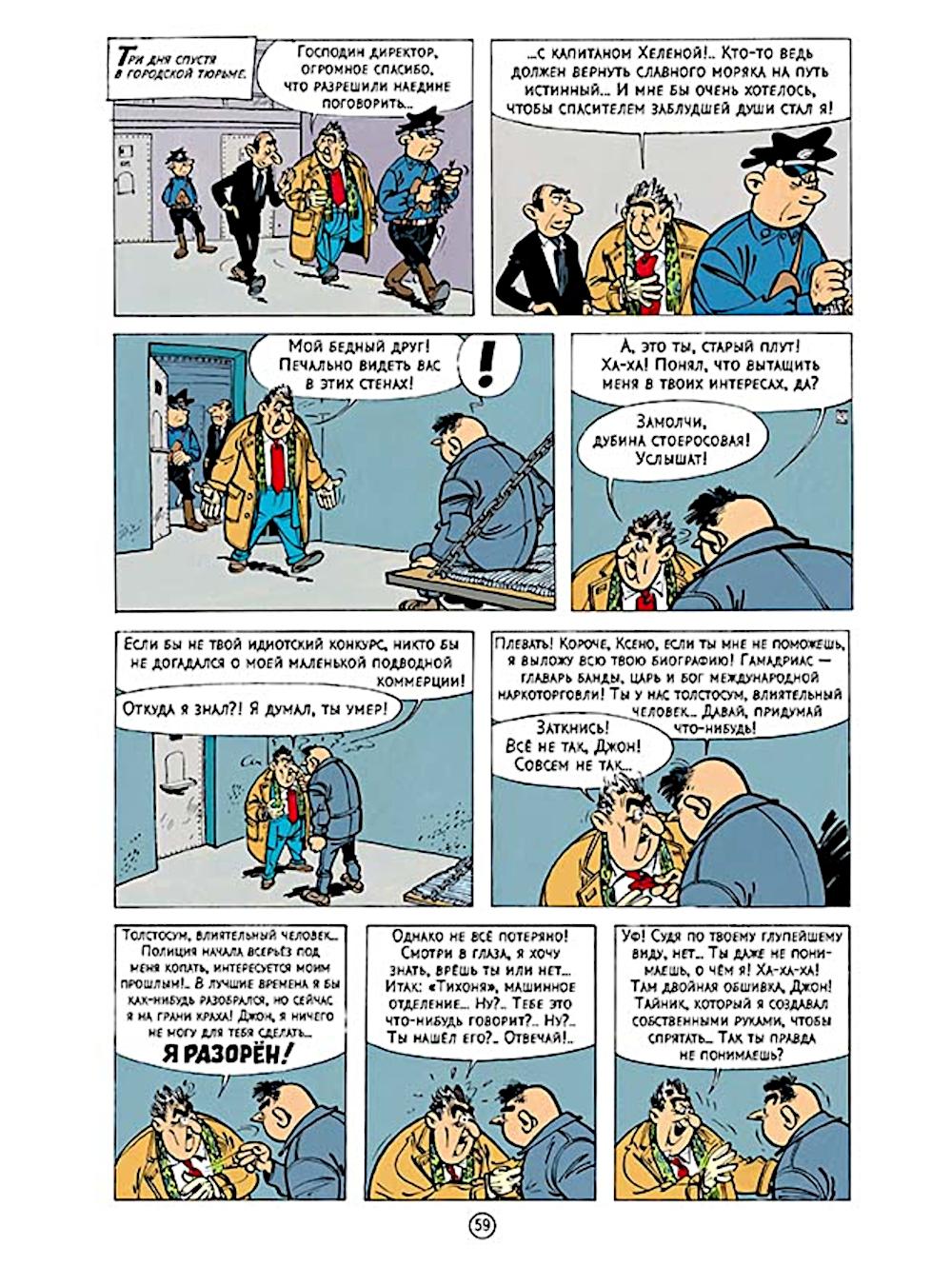 Спиру и Фантазио гостили у своего учёного друга графа де Шампиньяка, когда на глаза им попалась заметка о том, что некий богатый судовладелец объявил конкурс на создание аппарата для глубоководных работ. Профессор Шампиньяк загорелся этой идеей и быстро набросал схему водолазного скафандра и подводной лодки. Чертежи были отправлены на завод измерительных приборов и учредителю премии Ксенофонту Гамадриасу. Спиру и не подозревал, что, бросая в почтовый ящик письмо, он прокладывает себе путь в логово мурены. Спустя неделю началась череда странных событий. Грузовик, который вёз детали для подводного аппарата, потерял управление, а потом загорелся. Расследование показало, что шину пробила пуля, а грузовик подожгли. Пришлось заказывать весь комплект оборудования заново. Спустя месяц в мастерской замка произошёл взрыв, который уничтожил почти готовую подводную лодку. А днём ранее такой же взрыв разрушил лабораторию другого соискателя, который был тяжело ранен. Дело принимало опасный оборот: кто-то методично убирал с пути конкурентов. Спиру и его друзья решили перебраться в город, где им удалось закончить постройку субмарины. Гамадриас, которому они представили своё изобретение, раскрыл им истинную цель конкурса - отыскать его корабль, потерпевший крушение у мыса Кап-Роз, и кое-что поднять с глубины 200 метров. После этого разговора неизвестные попытались похитить Спиру и графа де Шампиньяка, которым лишь чудом удалось вырваться. И тогда друзья решили продолжить поиски затонувшего корабля тайно и на свой страх и риск...| Издательство | Мелик-Пашаев |