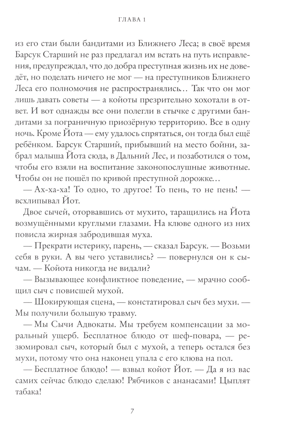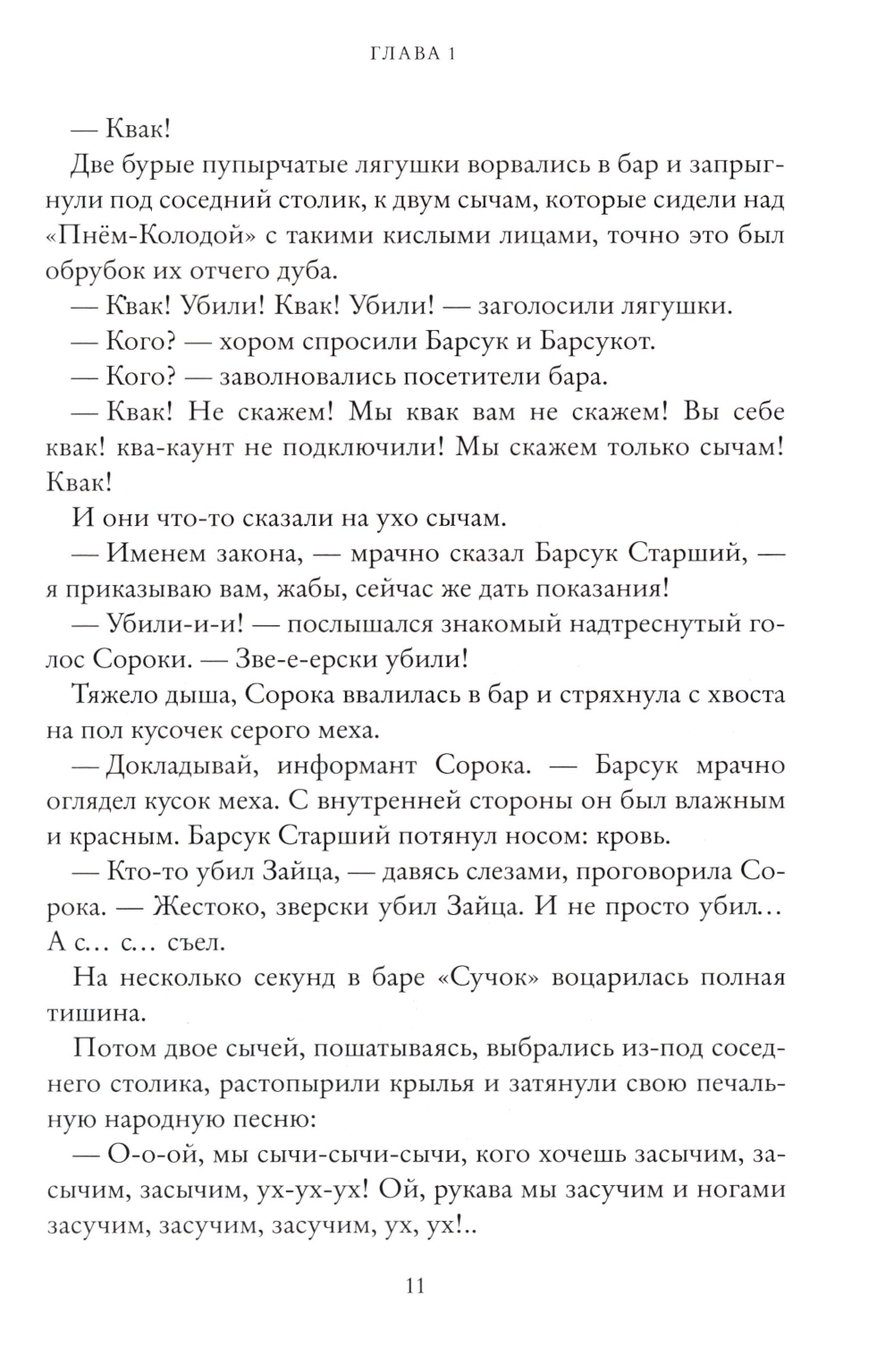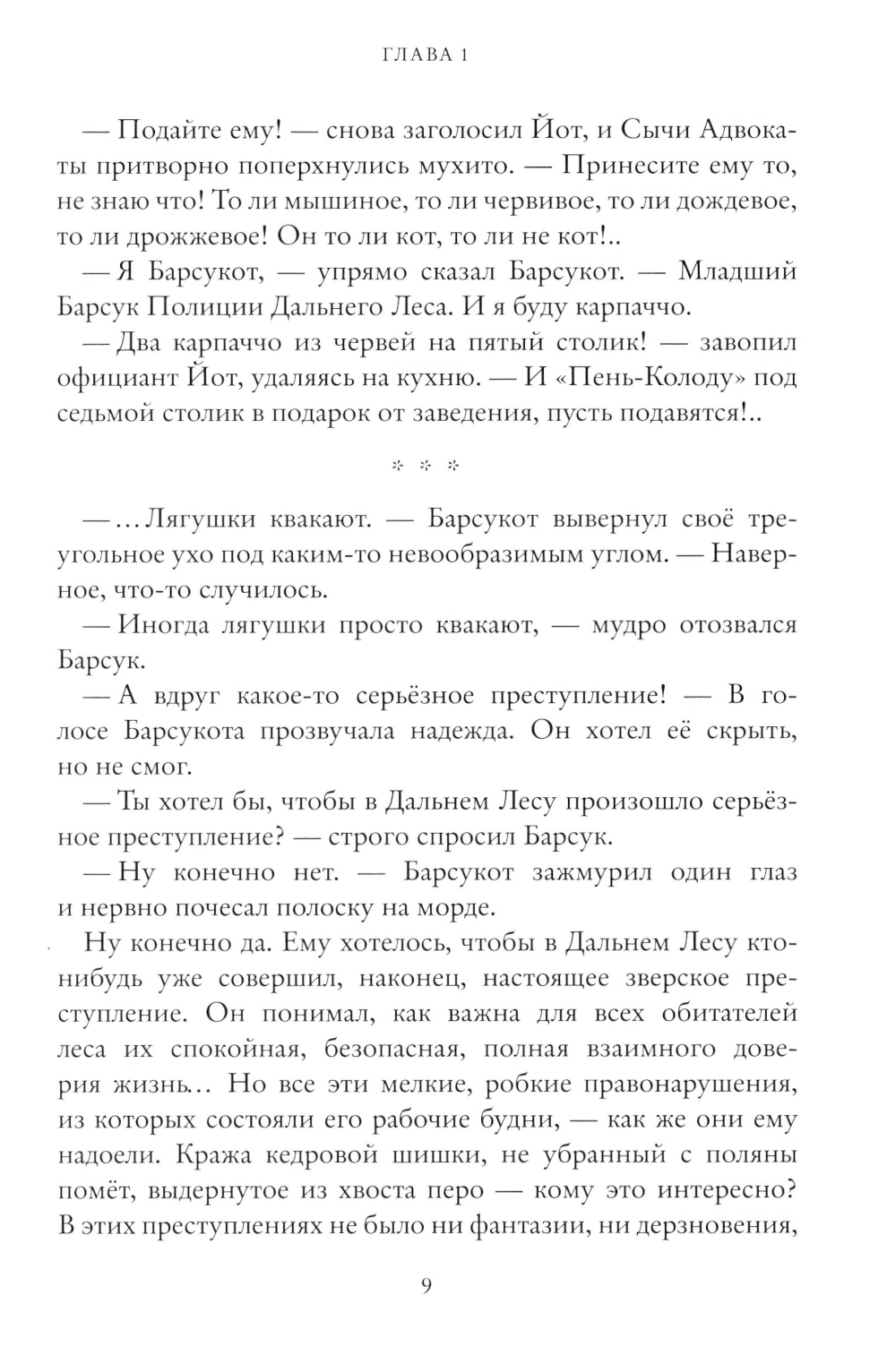 Жизнь в Дальнем Лесу не назовёшь спокойной: ни дня без преступлений, погонь, подозрений и зверских интриг. «Логово волка» - детективная история, в которой следствие ведут пожилой и опытный сыщик Барсук Старший и его помощник, дерзкий и отчаянный Барсукот. Все герои книги - звери, однако любить и ненавидеть, лгать и говорить правду в морду, доверять и отчаиваться, предавать и спасать они умеют не хуже нас, человекообразных читателей. Разобраться, кто здесь друг, а кто враг, кто невинная пушистая жертва, а кто роковая хищная самка, кто заложник, а кто захватчик, можно только в конце, ведь по правилам жанра преступник неизвестен до самой развязки. Но зато и ежу понятно, что написаны все истории с юмором и иронией, а сюжеты увлекут не только детей, но и их родителей.