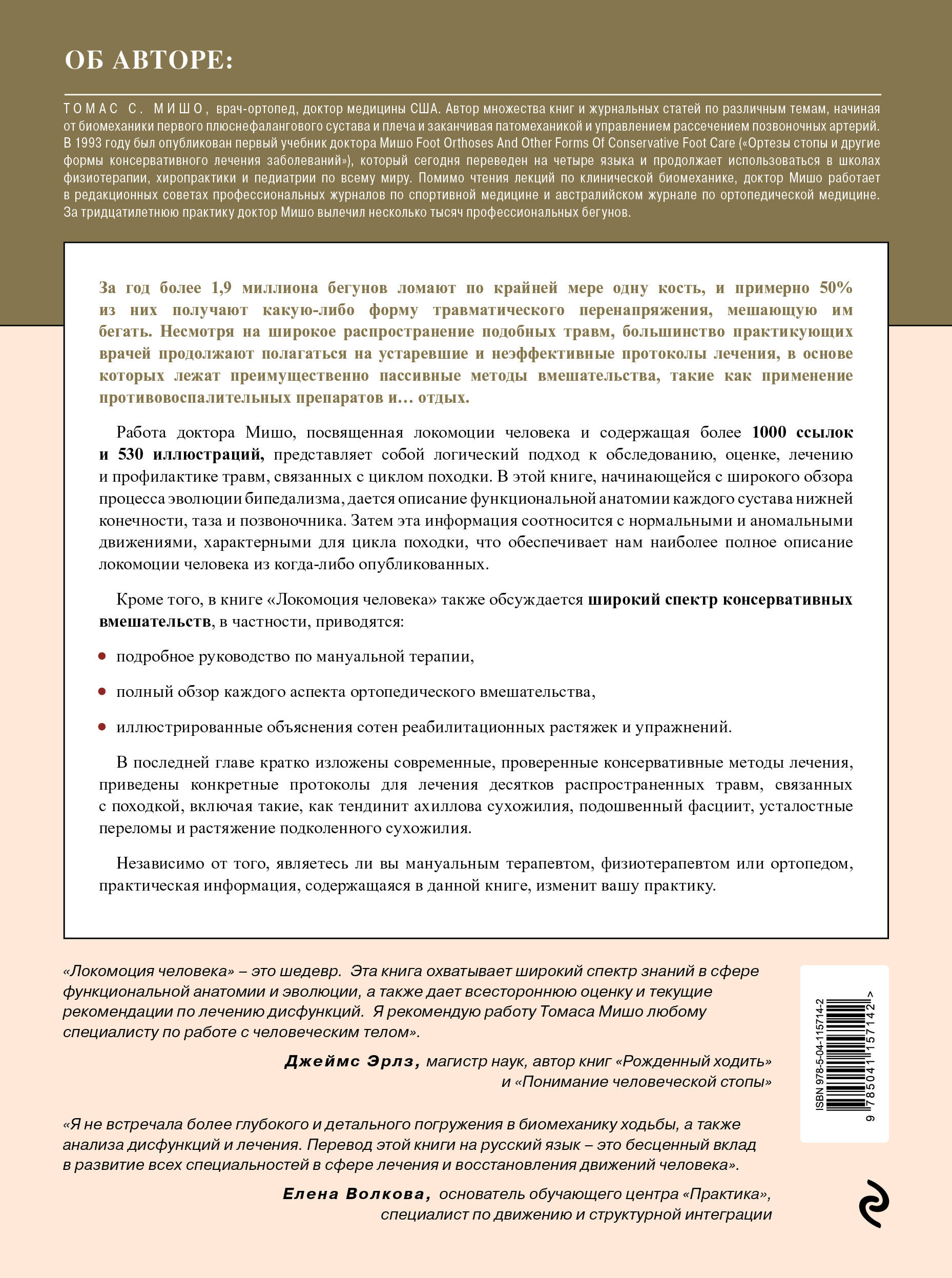 Книга доктора Мишо - настоящая библия ортопеда. Это всеобъемлющее издание начинает рассмотрение движения с полного обзора эволюции двуногости. Автор описывает функциональную анатомию каждого сустава нижней конечности, таза и позвоночника. Вся информация рассматривается в совокупности с правильными и неправильными паттернами движения в цикле походки. В результате мы получаем наиболее полное описание передвижения человека из когда-либо опубликованных. Отдельные главы посвящены множественным техникам ортопедического вмешательства при различных травмах и заболеваниях. Проиллюстрированы сотни реабилитационных растяжек и упражнений. В последней главе кратко излагаются современные, проверенные консервативные методы лечения и предлагаются специальные протоколы для десятков распространенных травм, связанных с походкой, включая тендинит ахиллова сухожилия, подошвенный фасциит, стрессовые переломы и растяжение подколенного сухожилия. Независимо от того, являетесь ли вы мануальным терапевтом, физиотерапевтом или ортопедом, эта книга обогатит вашу ежедневную практику или навсегда изменит ее.| Издательство | ООО "Издательство "Эксмо" |