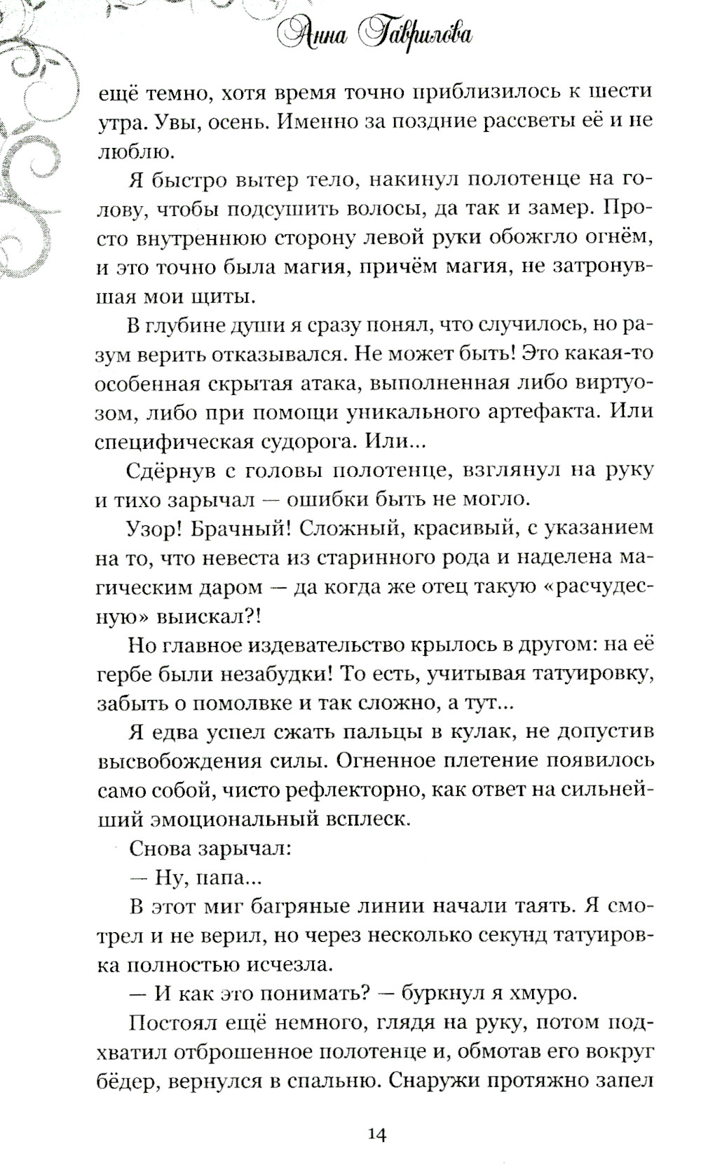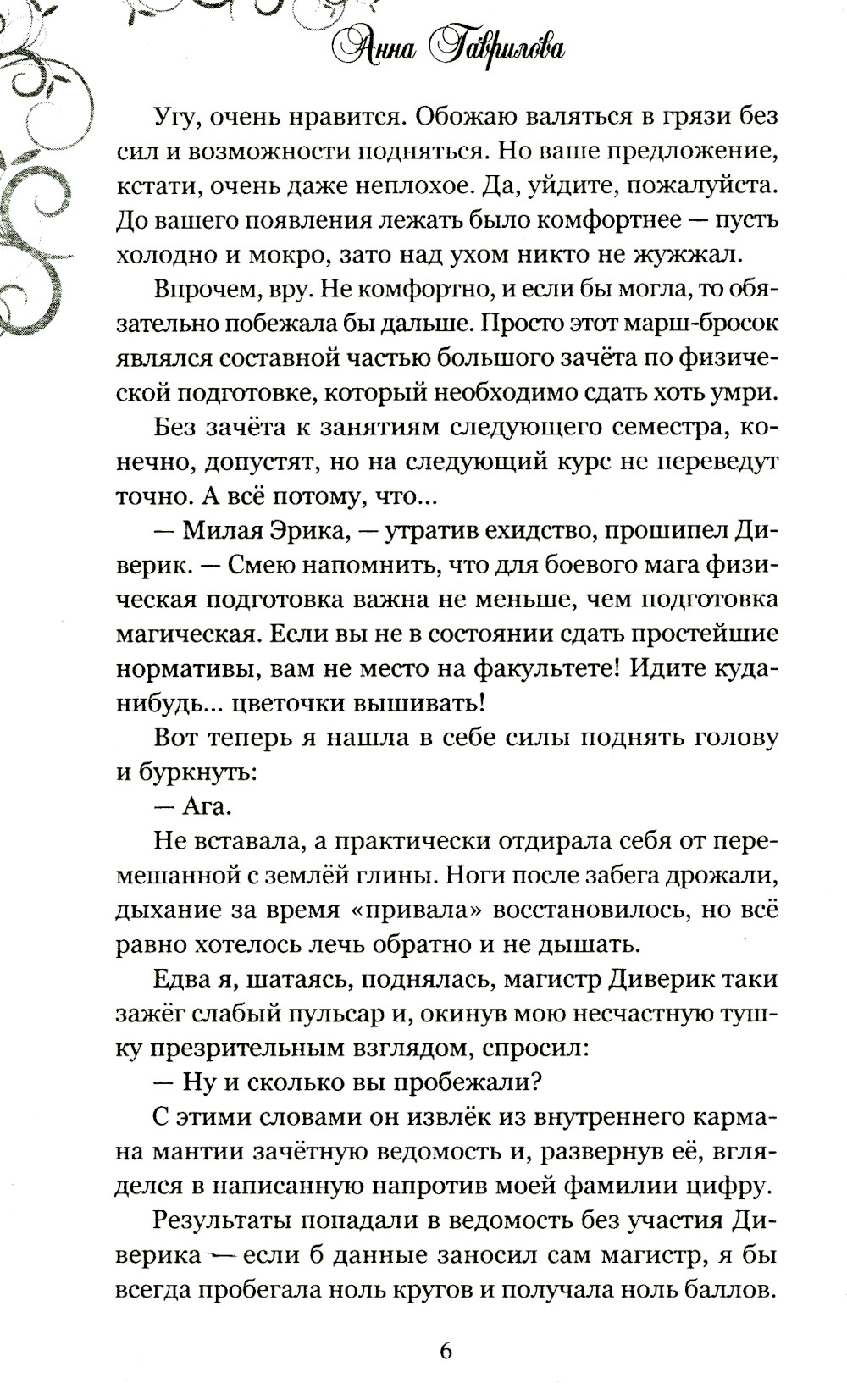 Магичка Эрика готова сделать все, лишь бы доказать, что достойна своих славных предков. Даже несмотря на низкий уровень магии, девушка стремится проявить себя в академии наилучшим образом. Доказать, что она чего-то стоит. Но то и дело появляются какие-то сложности. Однажды утром Эрика узнает, что помолвлена с неизвестным женихом. Разумеется, против собственной воли. Просто сын знатного семейства влюбился до беспамятства в неподходящую партию, и брак Эрики с ним может стать выгодным для всех. К тому же для семьи Эрики - это единственная возможность разобраться со всеми долгами. Конечно же, ни Эрика, ни юный лорд не хотят этого брака. Похоже, выбора у них нет, остается только узнать друг друга получше и, возможно, объединиться. Что будет, когда эта пара поневоле окажется вместе? Ответы на все эти вопросы вы найдете на страницах книги Анны Гавриловой.| Издательство | Яуза-каталог |