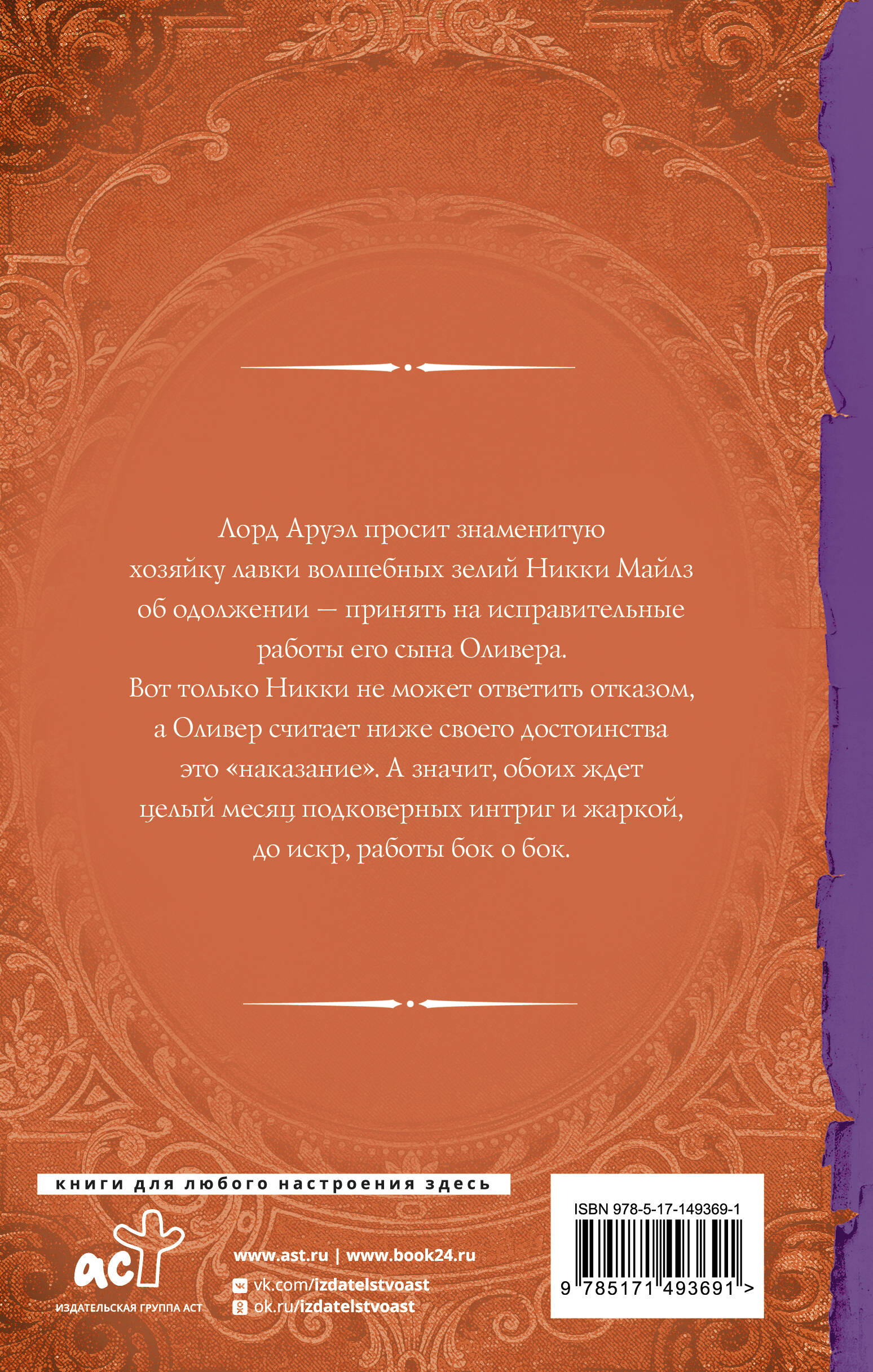 Лорд Аруэл просит знаменитую хозяйку лавки волшебных зелий Никки Майлз об одолжении - принять на исправительные работы его сына Оливера. Вот только Никки не может ответить отказом, а Оливер считает ниже своего достоинства это "наказание". А значит, обоих ждет целый месяц подковерных интриг и жаркой, до искр, работы бок о бок.| Издательство | АСТ |