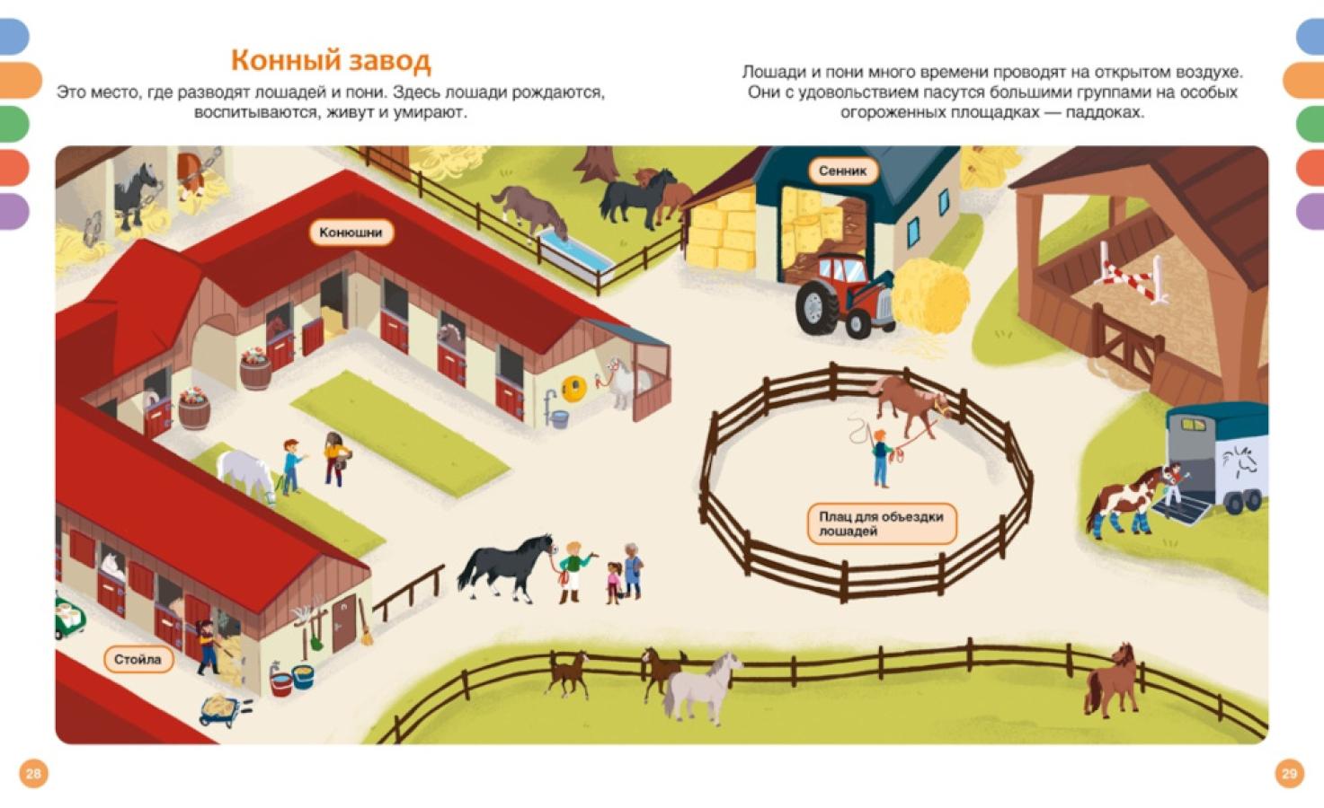 Эта книга - проводник в удивительный мир лошадей. Юные читатели побывают на конном заводе и в пони-клубе, узнают, как тренируются маленькие и взрослые всадники и как нужно заботиться о животных, посетят различные конные соревнования, а также познакомятся с историей диких и домашних лошадей и увидят, как эти прекрасные животные служат человеку. В конце каждой книжки собраны увлекательные задания и игры, которые помогут весело провести время и повторить изученное.| Издательство | Махаон |