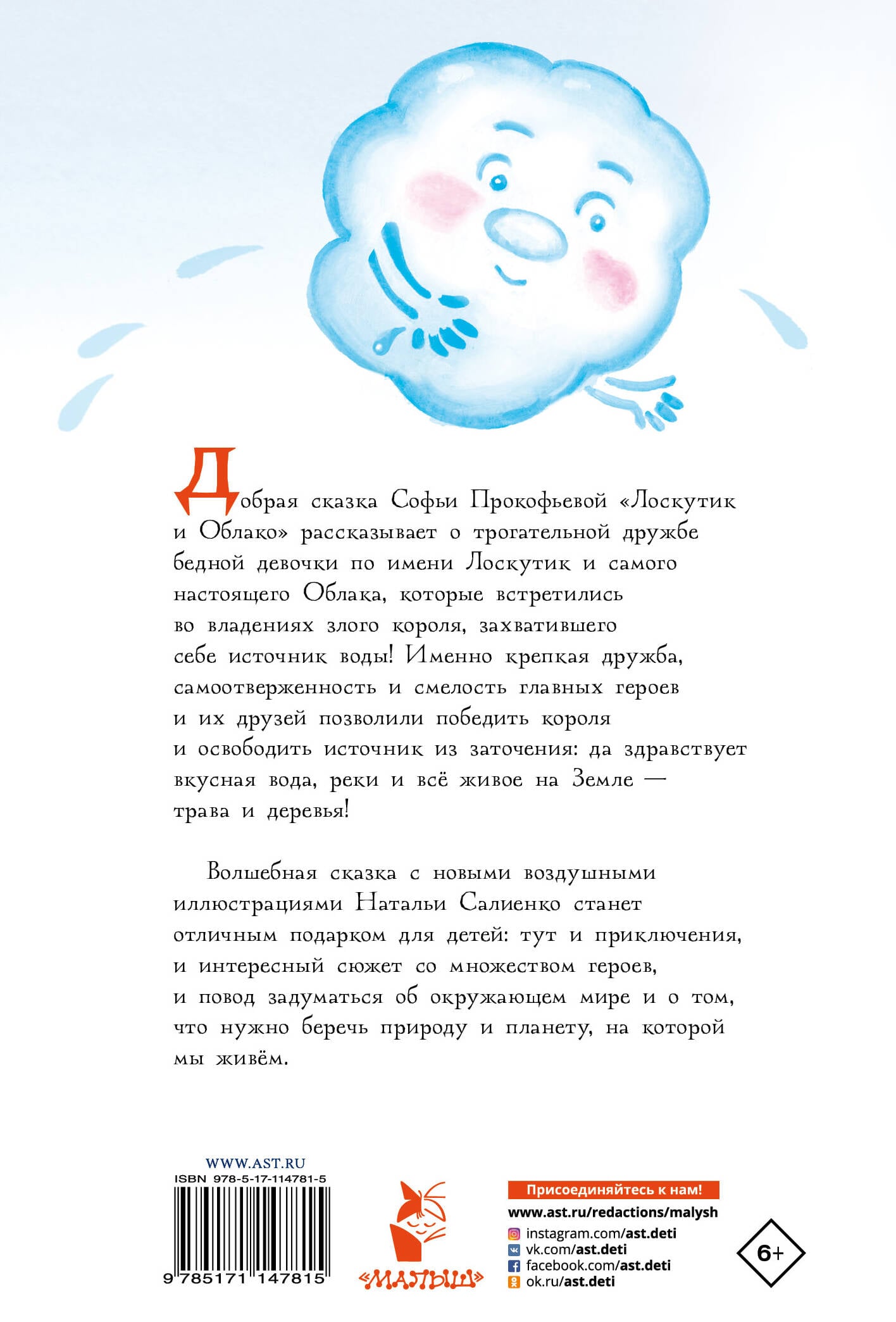 Добрая сказка Софьи Прокофьевой "Лоскутик и Облако" рассказывает о трогательной дружбе бедной девочки по имени Лоскутик и самого настоящего Облака, которые встретились во владениях злого короля, захватившего себе источник воды! Именно крепкая дружба, самоотверженность и смелость главных героев и их друзей позволили победить короля и освободить источник из заточения: да здравствует вкусная вода, реки и всё живое на земле - трава и деревья! Волшебная сказка с новыми воздушными иллюстрациями Натальи Салиенко станет отличным подарком для детей: тут и приключения, и интересный сюжет со множеством героев, и повод задуматься об окружающем мире и том, что нужно беречь природу и планету, на которой мы живём. Софья Прокофьева - известный автор множества детских книг, в том числе знаменитой книги "Приключения жёлтого чемоданчика". По сказке снят мультфильм!| Издательство | ИЗДАТЕЛЬСТВО "АСТ" |