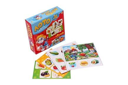 ЛОТО (30 фишек) + ПАЗЛЫ (24 элемента). ФРУКТЫ, ОВОЩИ, ЯГОДЫ (Арт. ИН-6066)