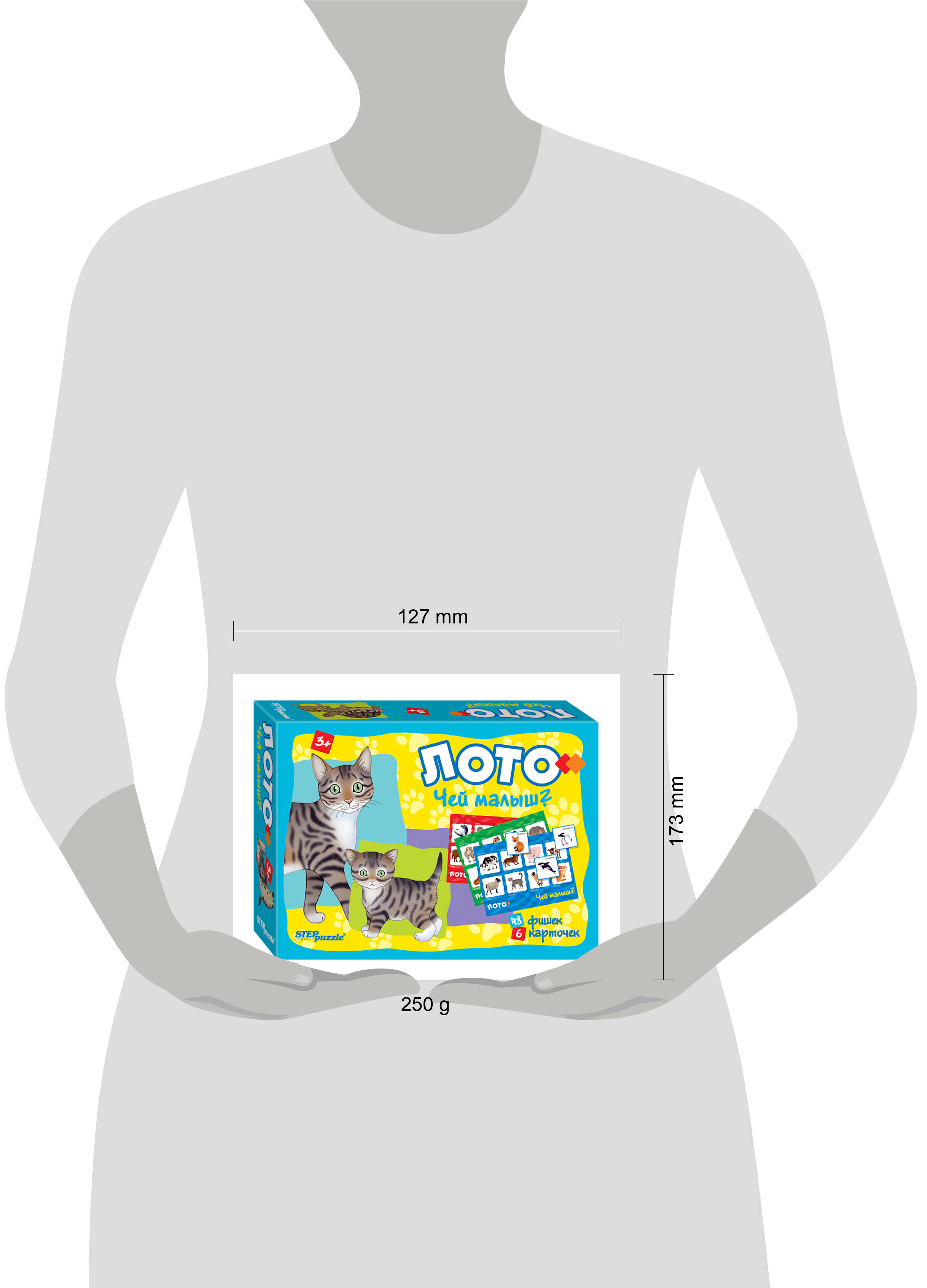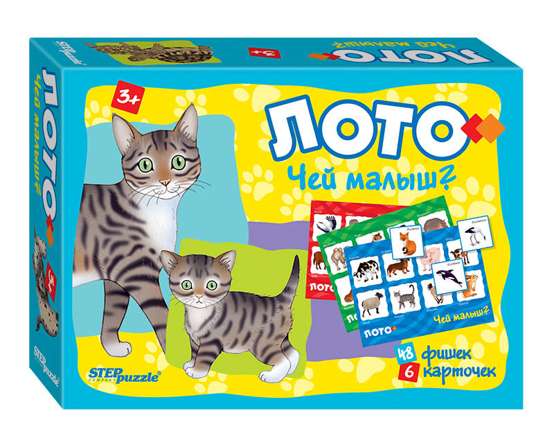 Лото "Чей малыш?" знакомит с названиями животных (млекопитающих, птиц, рыб). Учит соотносить взрослых животных и их детенышей. Что полезного в игре? Игра позволяет моделировать различные игровые ситуации. В процессе игры развивается логическое мышление, наблюдательность, внимание, память, мелкая моторика. Состав игры: карточки (6 шт.) фишки (48 шт.) мешок (1 шт.) правила игры. Количество игроков. В игре может принимать участие от 2 до 6 участников. Возраст игроков. Игра подходит для детей от 3 лет. В эту серию входят: Лото "Растения-животные" Лото "Ассоциации" Лото "Буквы-цифры" Лото "Часть-целое"| Издательство | Степ Пазл ЗАО |