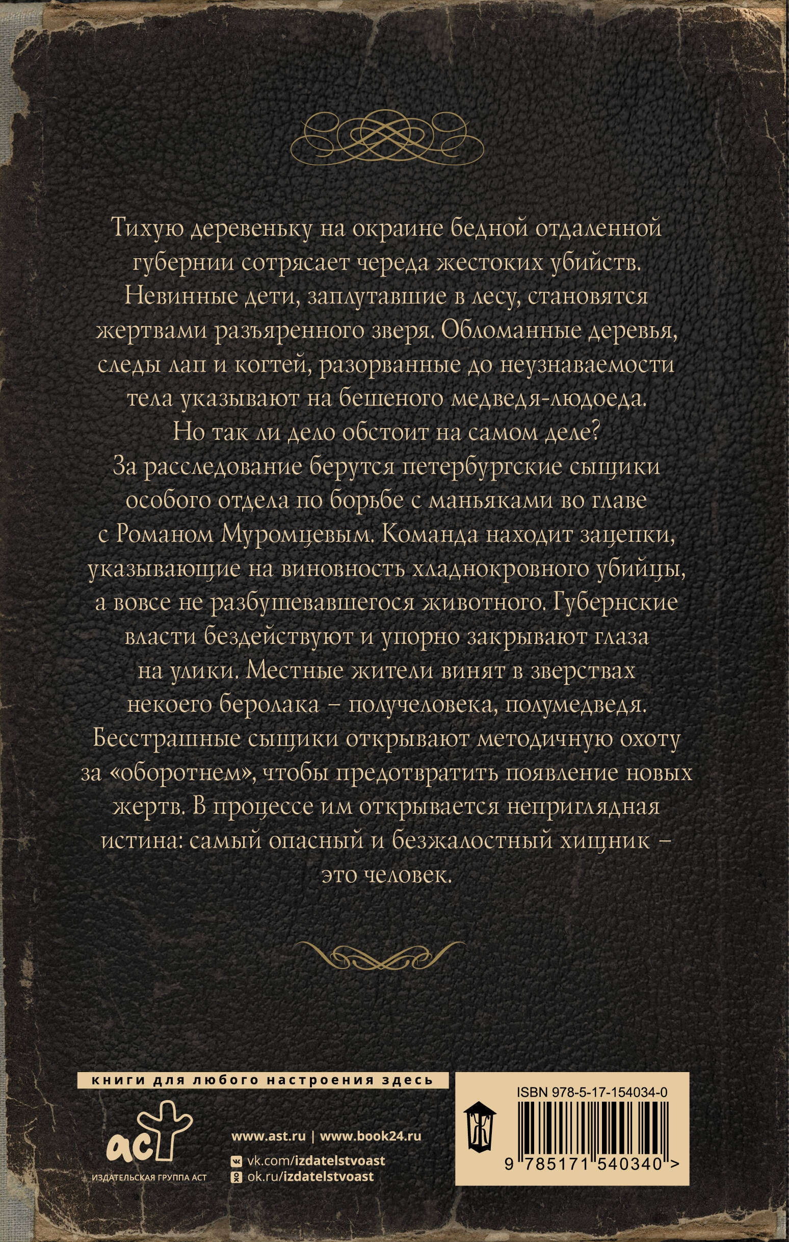 Тихую деревеньку на окраине бедной отдаленной губернии сотрясает череда жестоких убийств. Невинные дети, заплутавшие в лесу, становятся жертвами разъяренного зверя. Обломанные деревья, следы лап и когтей, разорванные до неузнаваемости тела указывают на бешеного медведя-людоеда. Но так ли дело обстоит на самом деле? За расследование берутся петербургские сыщики особого отдела по борьбе с маньяками во главе с Романом Муромцевым. Команда находит зацепки, указывающие на виновность хладнокровного убийцы, а вовсе не разбушевавшегося животного. Губернские власти бездействуют и упорно закрывают глаза на улики. Местные жители винят в зверствах некоего беролака - получеловека, полумедведя. Бесстрашные сыщики открывают методичную охоту за "оборотнем", чтобы предотвратить появление новых жертв. В процессе им открывается неприглядная истина: самый опасный и безжалостный хищник - это человек.| Издательство | ИЗДАТЕЛЬСТВО "АСТ" |