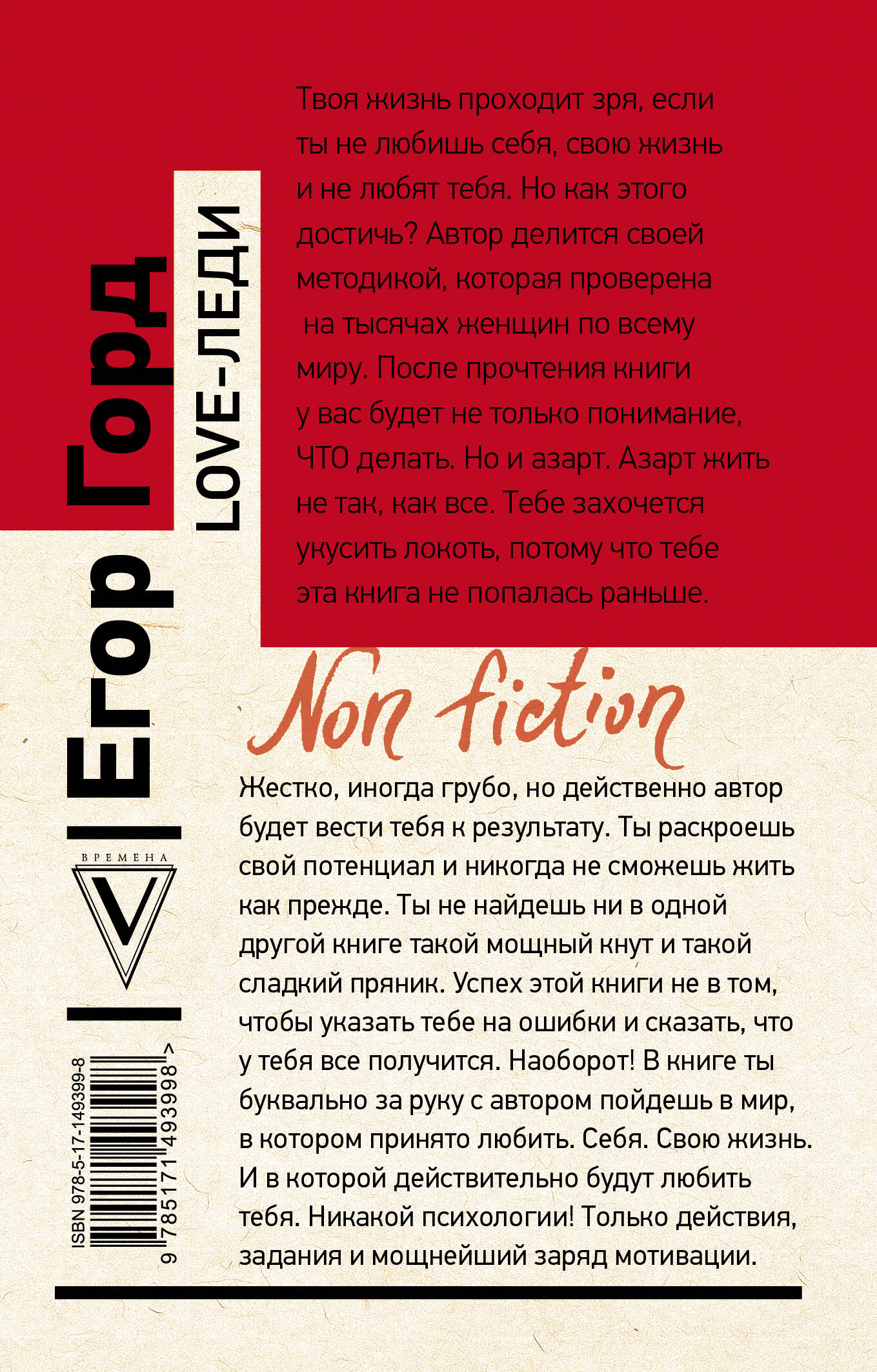 Твоя жизнь проходит зря, если ты не любишь себя, свою жизнь и не любят тебя. Но как этого достичь? Автор делится своей методикой, которая проверена на тысячах женщин по всему миру. После прочтения книги у вас будет не только понимание, ЧТО делать. Но и азарт. Азарт жить не так, как все. Тебе захочется укусить локоть, потому что тебе эта книга не попалась раньше. Жестко, иногда грубо, но действенно автор будет вести тебя к результату. Ты раскроешь свой потенциал и никогда не сможешь жить как прежде. Ты не найдешь ни в одной другой книге такой мощный кнут и такой сладкий пряник. Успех этой книги не в том, чтобы указать тебе на ошибки и сказать, что у тебя все получится. Наоборот! В книге ты буквально за руку с автором пойдешь в мир, в котором принято любить. Себя. Свою жизнь. И в которой действительно будут любить тебя. Никакой психологии! Только действия, задания и мощнейший заряд мотивации.| Издательство | ИЗДАТЕЛЬСТВО "АСТ" |
