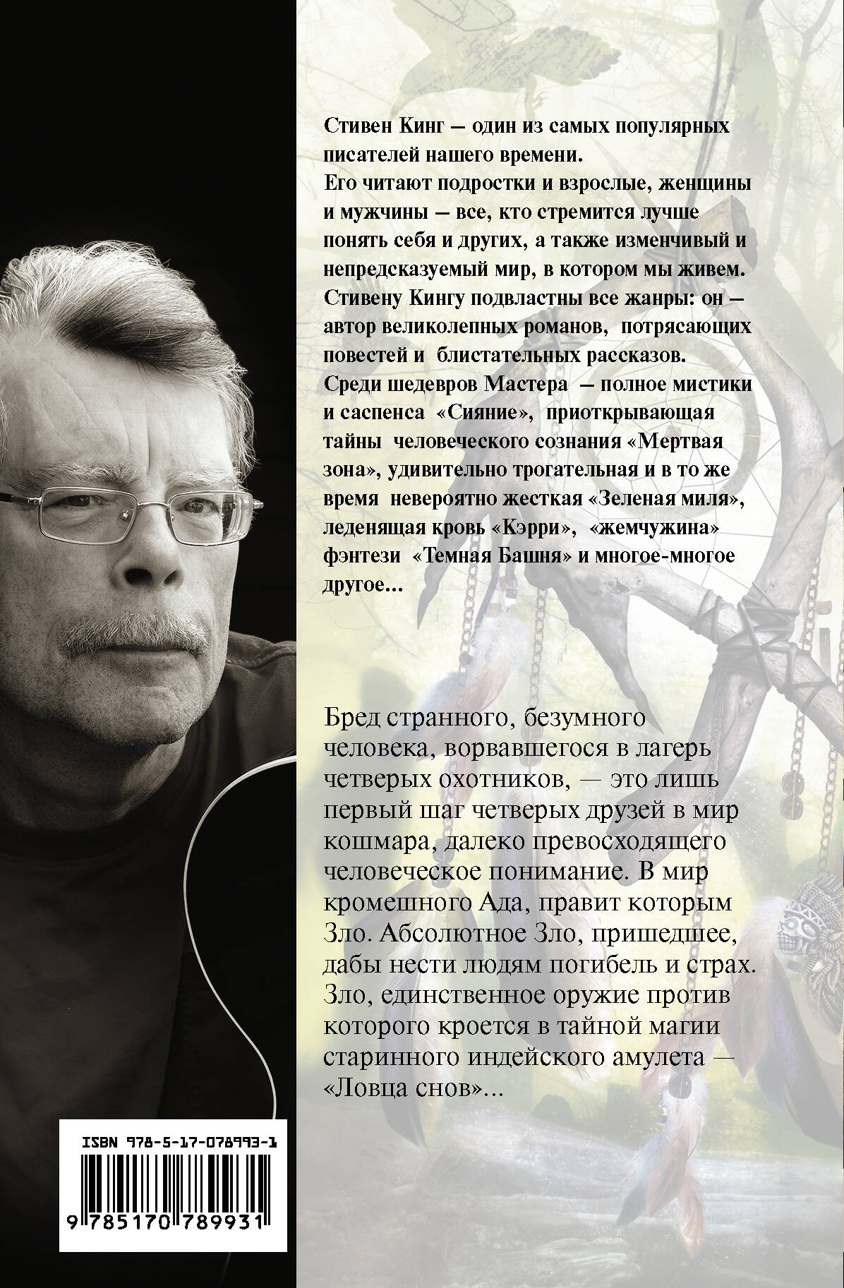 Бред странного, безумного человека, ворвавшегося в лагерь четверых охотников, - это лишь первый шаг четверых друзей в мир кошмара, далеко превосходящего человеческое понимание. В мир кромешного Ада, правит которым Зло. Абсолютное Зло, пришедшее, дабы нести людям погибель и страх. Зло, единственное оружие против которого кроется в тайной магии старинного индейского амулета - "Ловца снов"...| Издательство | ИЗДАТЕЛЬСТВО "АСТ" |
