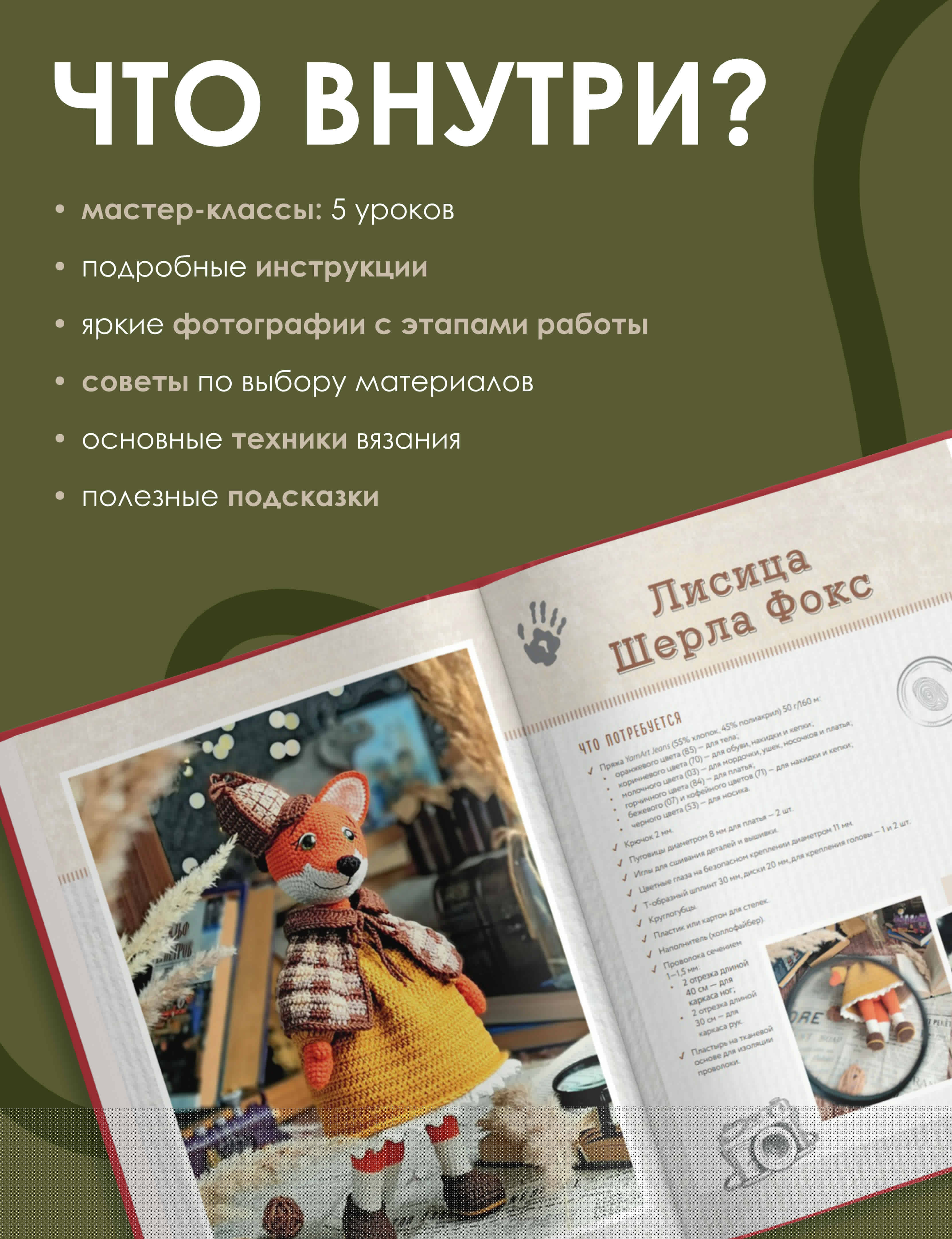 В книгу вошли 5 мастер-классов. Вы сможете связать влюбленных вишенок, лягушек Жабера и Жабетту, ежиков Пинкуса и Пруденс, детективов Шерлу Фокс и Доктора Таксона. Все мастер-классы содержат пошаговые фотографии и подробное описание вязания каждого персонажа, чтобы создавать их было легко и интересно. Игрушки не только подойдут детям, но и станут украшением интерьера или тематическим подарком для взрослого человека. Также автор подробно разобрал все необходимые для работы материалы и инструменты, описал основные приемы и техники выполнения всех элементов. Внутри книги вы также найдете подарок: дополнительный мастер-класс по вязанию снеговика и снежки!| Издательство | Издательство "АСТ" |
