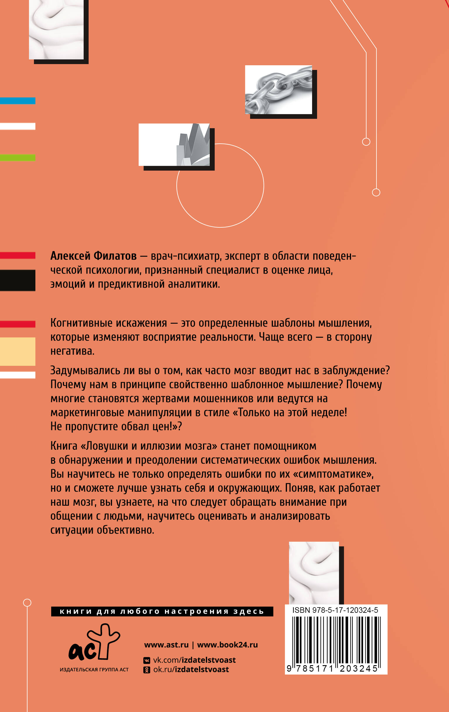 В книге "Ловушки и иллюзии мозга" представлены типичные ошибки мышления, так называемые когнитивные искажения. Научившись их определять и прорабатывать, вы сможете лучше понять себя и окружающих, а также выстраивать коммуникацию правильно.| Издательство | Издательство "АСТ" |